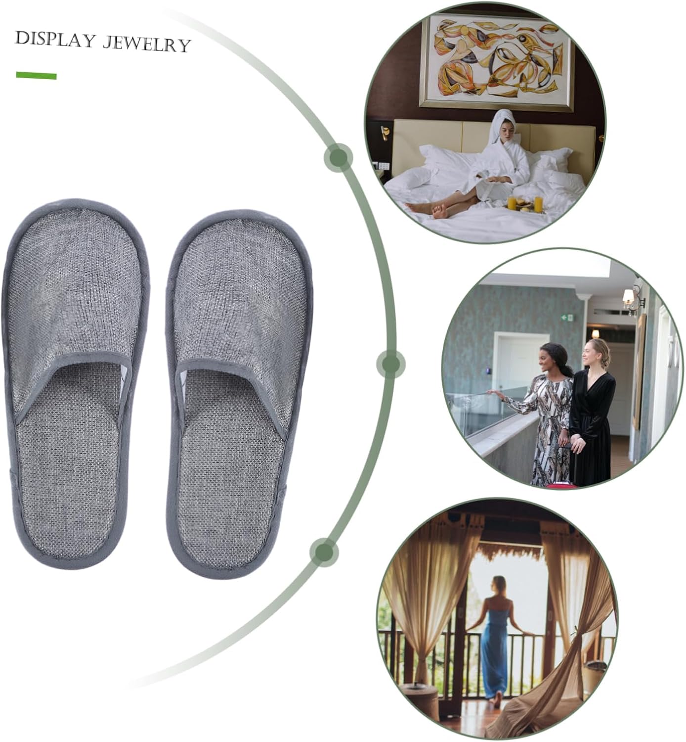 Package List 10 x Pairs of Slippers Features -Material: Cloth, Flax, EVA Spa Slippers -Size 40: 25.0CM,8US, 5.5UK, 39EU, 9.825Inch One Time Slippers. -Size 42: 26.0CM, 9US, 6.5UK, 40.5EU, 10.218Inch Slippers. -A must item for hospitality use, giving you a better clean environment Guest Slippers. -Made of material, it is disposable and practical in use Simple Hotel Slippers. -Protect you and guests from walking safely without being slipped Disposable Slippers. -Great for wearing in home, hotel and salon. It can be one-time used or more One-off Slippers. -Ideal for hotel, short term vacation rental, salon, travel, airline, etc Hotel Shoes.Goods DescriptionHome Indoor Slippers Non-slip and comfortable, you can wear it all the day.One Time Slippers You can wear it in the bedroom, living room, kitchen, airplane, hotel, etc.Hotel Shoes Are you still looking for some house slippers? If so, our disposable slippers are carefully prepared for you