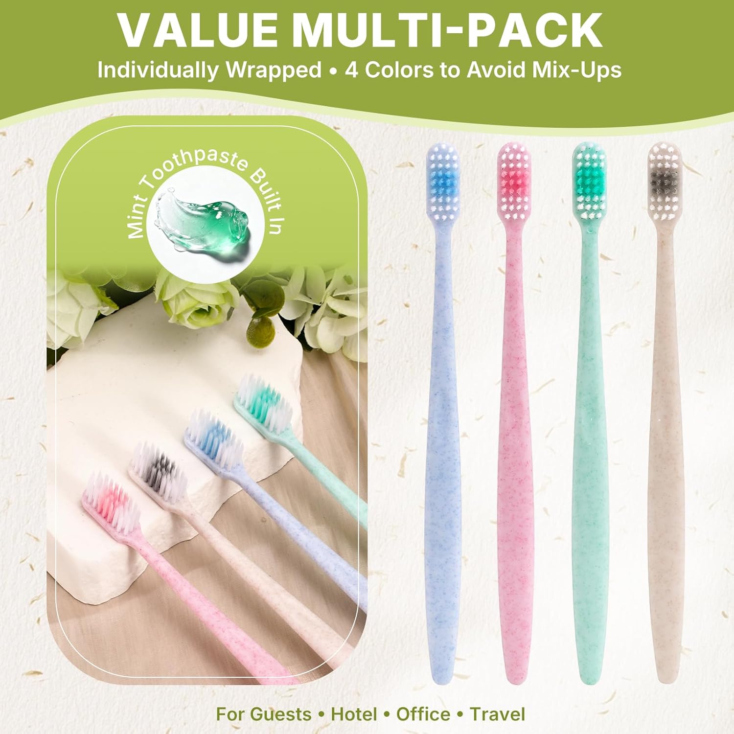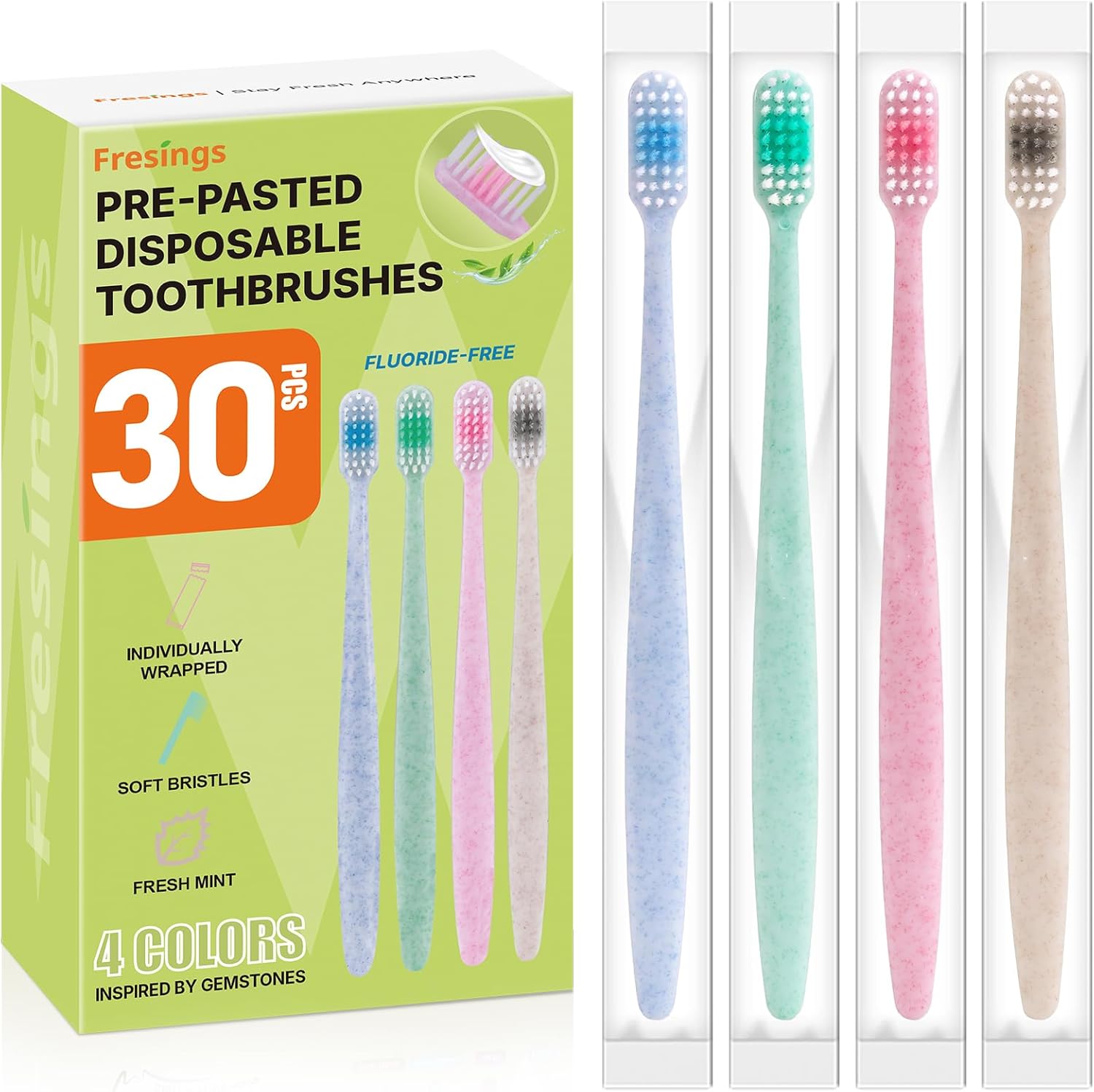 | Included Components | Assorted Gemstone Colors, Individual Wrappers, Mint Toothpaste (Built-In), Multi-Pack / Value Pack, Pre-Pasted Disposable Toothbrushes |