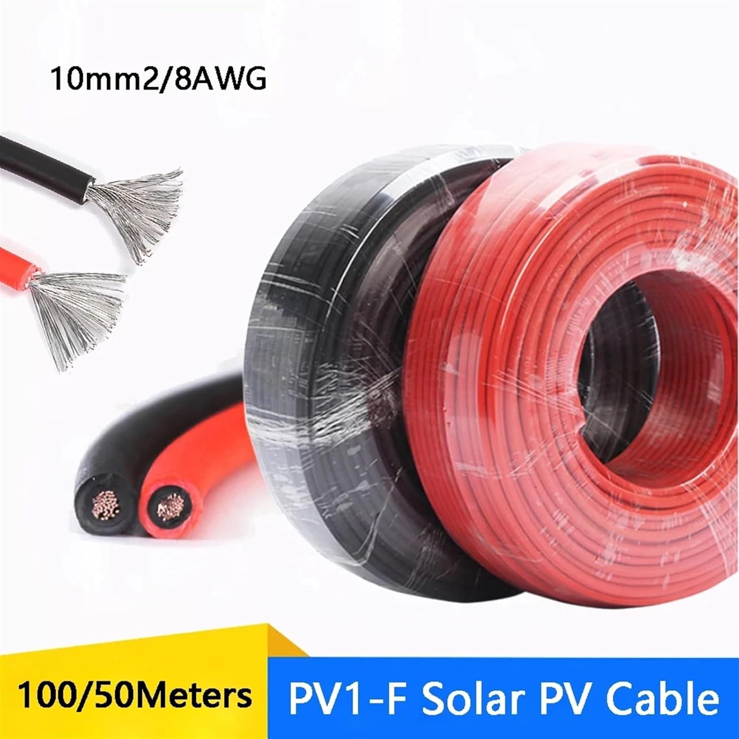 Cat 5 CablesApplied to solar panels for power generation and related components of the wiring, connection,particularly suitable for outdoor .Resistance to sunlight, anti-aging , Using the low smoke halogen-free flame retardant materials, higher grade, more safety.PV1-F Solar PVCableINTRODUCTIONspecifications:10mm²(8AWG)Rated voltage:AC 0.6/1KV,DC1.5KVColor:Red / BlackFeature:Double insulation cover,TUV approvedConductor material:stranded tin-plated ~ 99.95% oxygen-free copperOuter Sheath:Halogen-free low-smoke polyolefin(XLPO)Inner Insulation:Halogen-free low-smoke polyolefin(XLPO)Service life:25 years (-40 +90 )Application:Indoor and outdoor solar installationsFire rating:UL94-V0Seller declaration:This itemisdouble-sheathed cable, which is not as soft assingle-sheathed cable and silicone cable, please pay attention to the distinctionSpecificationModelSpecifications(mm2)Conductors(MM)outer diameter (mm)Conductor outer diameter (mm)20 Conductor DC resistance(Ohm/km)PV1-F 1*1616126/0.410.045.81.24PV1-F 1*101084/0.48.824.91.95PV1-F 1*66 84/0.37.523.63.39PV1-F 1*44 56/0.36.382.95.09PV1-F 1*2.52.549/0.255.632.158.21PV1-F 1*1.51.530/0.254.981.513.7==========Model Number : PV1-F 10mm2Application : OverheadType : InsulatedConductor Type : StrandedConductor Material : CopperInsulation Material : PVCRated voltage : AC 0.6/1KV, DC1.5KVCertification : TUV approvedConductor material : stranded tin-plated ~ 99.95% oxygen-free copperColor : Red / Black