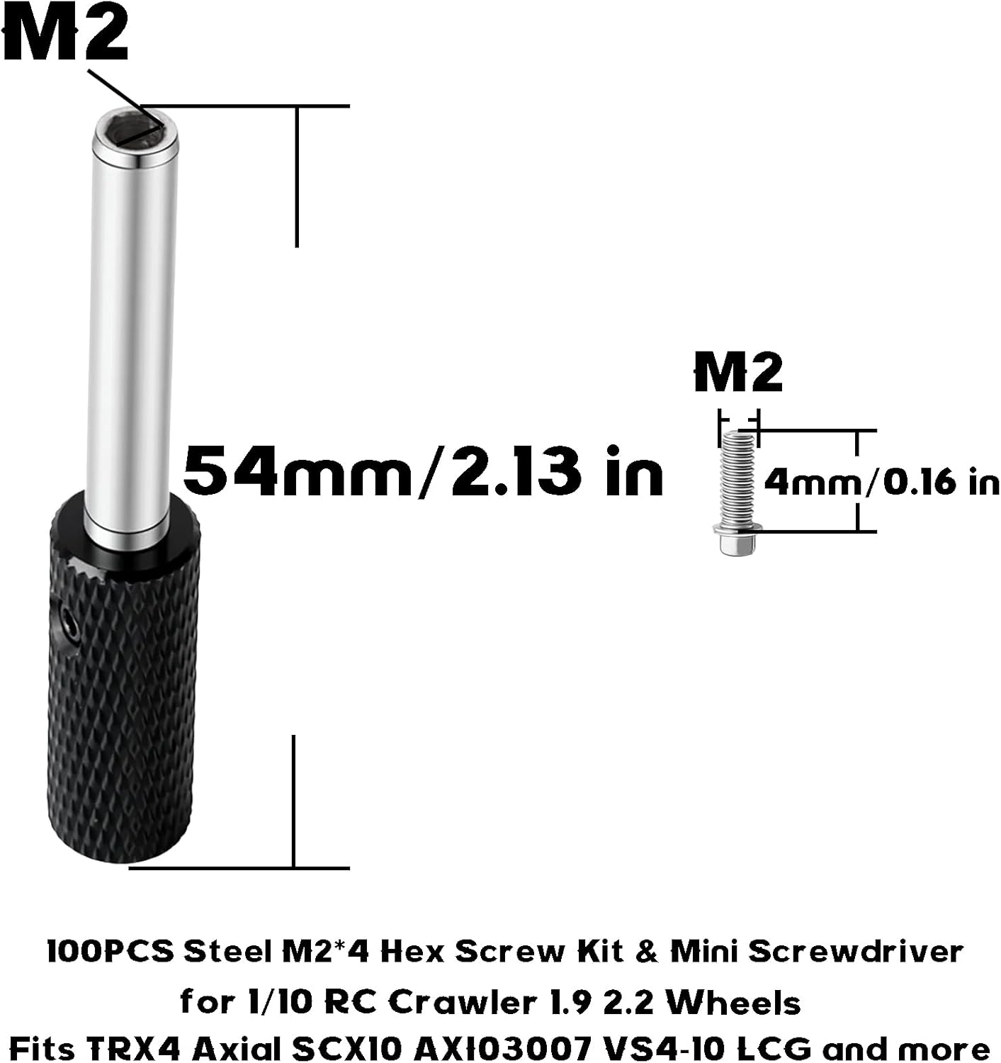 COMPLETE YOUR SCALE BUILD! - 100-Piece Premium Beadlock Screw Set Achieve that perfect, detailed look and secure your tires. This comprehensive kit provides all the high-grade M2 hardware you need to assemble, upgrade, or refresh the beadlock rings on multiple sets of 1.9" or 2.2" scale wheels for your 1/10 RC crawler. No more searching for spares or mismatched screws!