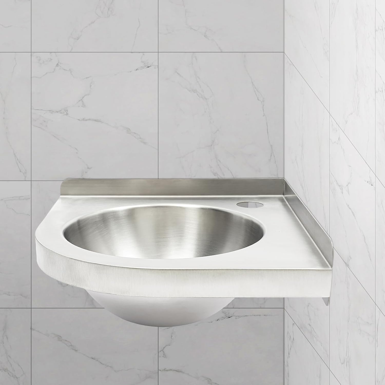 DetailsTwo Mounting Brackets: They are convenient for you to fix the sink to the wall.Pre-drilled Hole: The 1.38-inch diameter hole is convenient for you to install a faucet(not included).Package Included1* Stainless Steel Sink 1* Drain Plug1* Drain Pipe1* Strainer2* Mounting Brackets Other Accessories for AssemblySpecificationsMaterial: 304 Stainless SteelColor: SilverStyle: ModernProcess: Brushed Assembly Required: YesMounting Type: Wall-mountedDrain Pipe Length: 80cm/31.5inOverall Product Size: 30.5*30.5/12.01*12.01inSink Diameter: 22.5cm/8.86inThickness: 1.2 mm/0.05inWater Drain Hole Diameter: 4cm/1.57inFaucet Installation Hole Diameter: 3.5cm/1.38inEach Mounting Bracket Size: 25.25*4.1*2.5cm/9.94*1.61*0.98inPackage Size: 31*31*15cm/12.2*12.2*5.9inGross Weight: 1.1kg/2.43lbsApplicationThe wall mounted sink is suitable for RV, campervans, yachts, kitchens, balconies, bathrooms, bars, RV, outdoor restrooms, bars, etc.NotesPlease check the size carefully before ordering.We do not recommend this product for countertop mounting.Please note that our package only includes one sink and related accessories, faucet and other items are not included. Please do not scratch its surface with sharp objects for a longer service life. To increase the sink's life, please clean it once a week with a cleanser (to rub in the direction of the finish lines), a soft cloth, or a sponge rather than aggressively cleaning it.