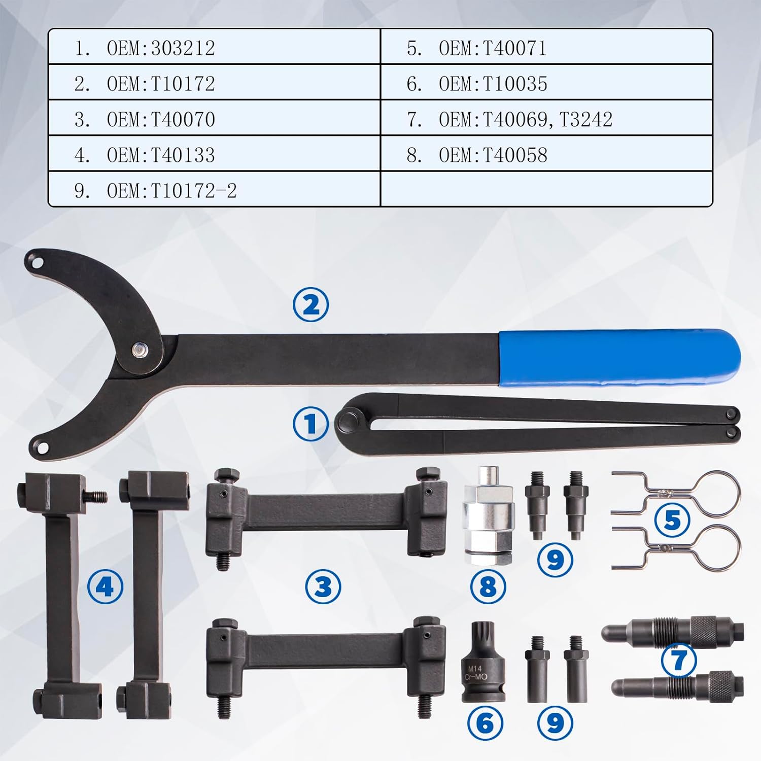 Timing Tool Kit Replacement for Audi VW 2.0 2.4 2.8 3.0T 3.2 4.2 5.2 Engine A4 A6 A6L A8 Q5 Q7 R8 303212 T40133 T40070 T40058 T10172 Alignment Camshaft Locking Tool