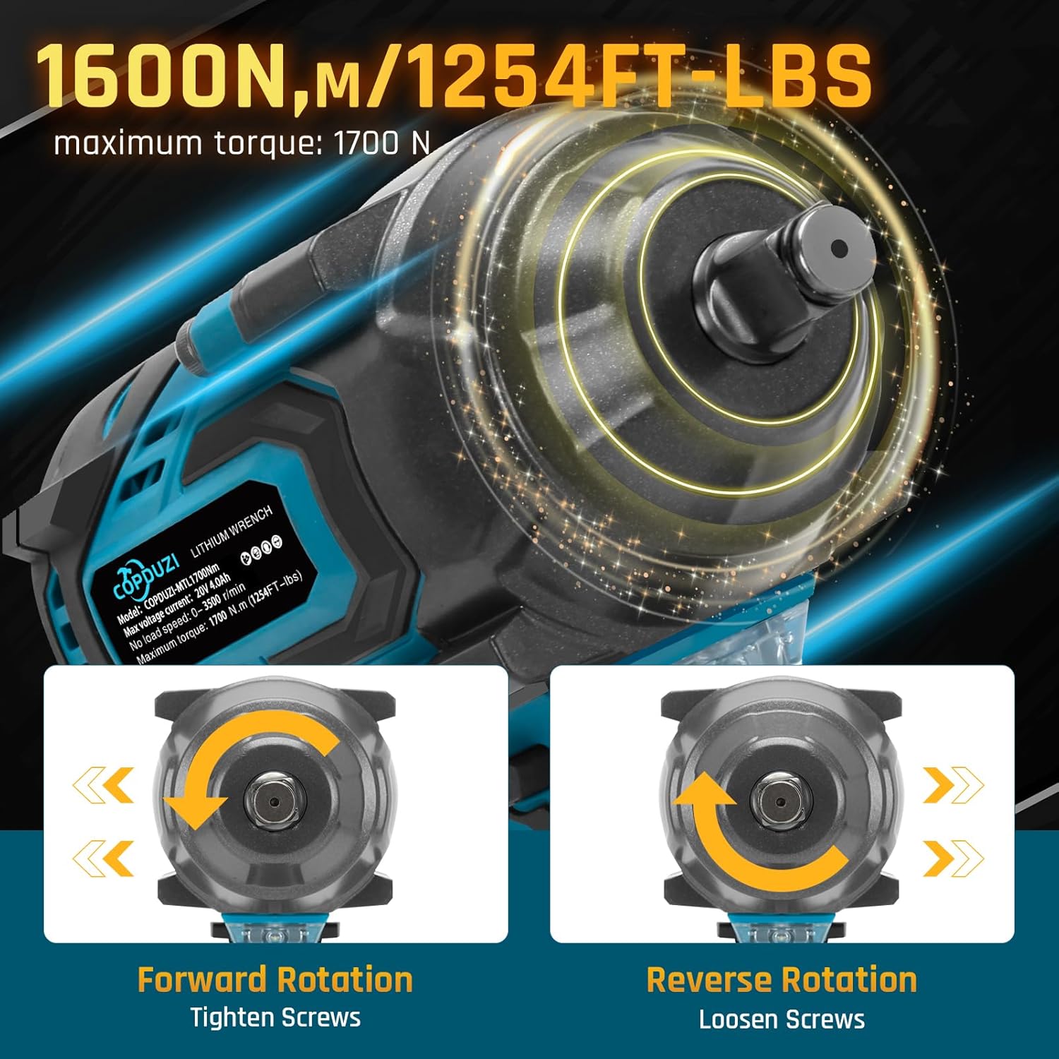 | Included Components | 1 x 5" Extension Rod, 1 x Cordless Impact Wrench, 1 x Fast Charger 6 x Sockets, 1 x Toolbox 1 x Manual, 2 x 4.0Ah Batteries |