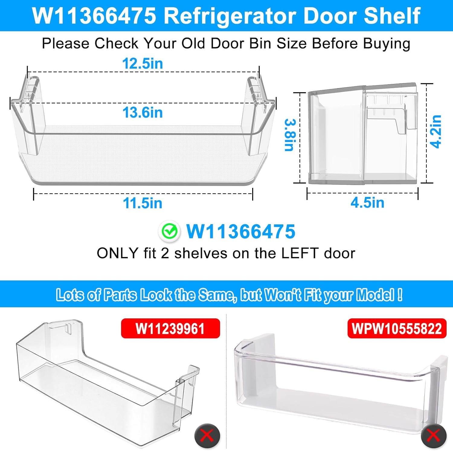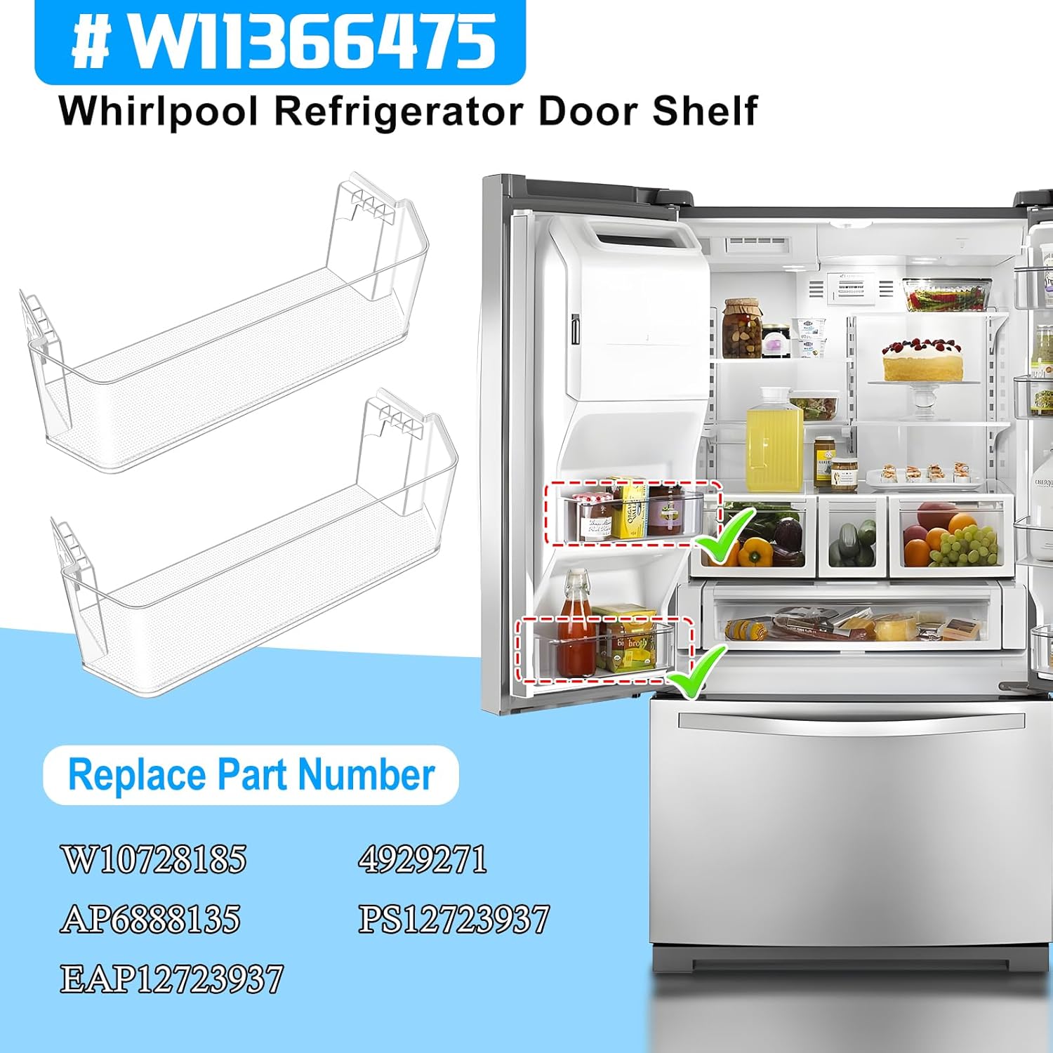 | Included Components | 2X W11366475 Fridge Trivet Shelf For Whirlpool Refrigerator Door Shelf |