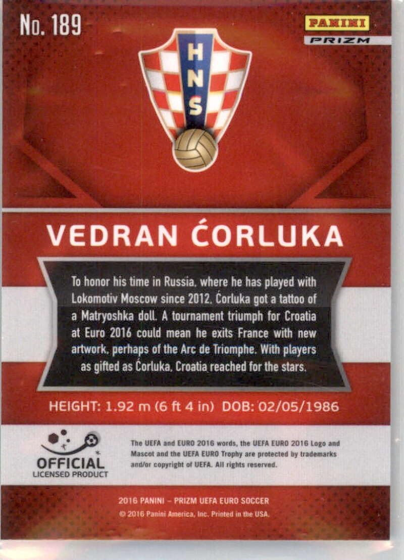 2016 Panini Prizm UEFA Euro White Prizms #189 Vedran Corluka Croatia Official FIFA Soccer Card in Raw (NM or Better) Condition