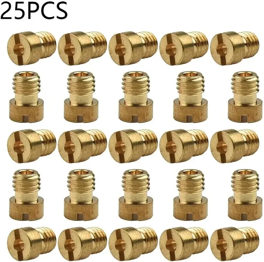Main jet set suitable for carburettors with M5 jets. Suitable for Dellorto, SHA 13, SHA 14, SHB 16, SHB 19, SHB 20, SHBC 19 carburettors, etc. This set includes 25 nozzles, providing a range of options for tuning the engine without the need to order individual jets. Purchasing a complete set is more economical. The kit contains 25 different main jets: 55, 58, 60, 62, 65, 68, 70, 72, 75, 78, 80, 82, 85, 88, 90, 92, 95, 98, 100, 102, 105, 108, 110, 112, 115. Package content: 25 x Main jet Compatibility Disclaimer: This is an aftermarket replacement part. Any brand names or model designations mentioned are used solely for the purpose of demonstrating compatibility.