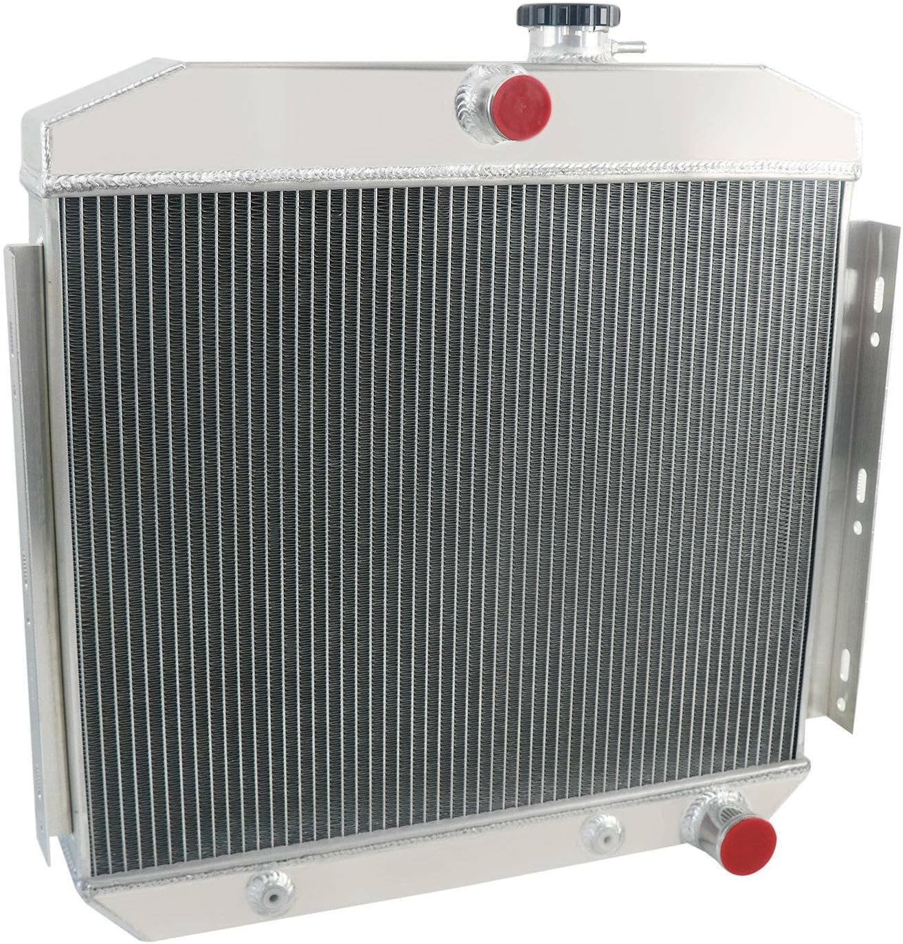 Application: The Radiator Fits: For 1955-1957 Chevrolet Bel air & Del Ray L6 Engines For 1955-1957 Chevy One-Fifty&Two-Ten Series L6 Engines Interchange Part Number:5056 CC5056 EC5056 MC5056 DPI5056 RADIATOR ONLY FITS CARS THAT CAME WITH FACTORY 6 CYL CORE SUPPORT AND HAVE BEEN UPGRADED TO V-8 ENGINE FACTORY V-6 CARS HAVE RADIATOR MOUNTED ON GRILL SIDE OF CORE SUPPORT This Radiator Size: Brand: Cubauto Material:Full Aluminium High Performance Racing Spec. 3-Row of tubes Core Racing Design Radiator Flow: Down Flow Core Dimensions:(H x W): 17 1/4" X 21 1/2" Overall Dimensions:(H x W): 24 1/2" X 23 3/4" Hose Locations: IN: Center - OUT: Passenger Hose Fittings: IN: 1 1/2 - OUT: 1 3/4 Trans Cooler: 1/2 20 Straight Thread G1/4 Mounting Type: OEM Mount All aluminum core and tank. The tank is welded by TIG. CNC Machined Filler Neck and Cap Package Include: 1 X 3-Row AA5052 Aluminum Radiator 1 X CNC Machined Radiator Cap Why Choose Cubauto Radiator? 1.Made from Aircraft AA5052 grade aluminum for prolonged lifespanand with raw aluminum finish 2.Brazed core technology to guarantee optimum performance and dependability 3. All AA5052 Aluminum 2mm thick tanks and fittings,Ensure it's hard and durable 4.Billet Aluminum CNC machined fill neck rugged and durable 5.CNC machined cap with Engraved craftsmanship, anodized treatment. 6.Carefully crafted to exceptional OE standards for precise fit. 7.All New Radiators - 100% leak tested. 8.The tanks are 100% welded by TIG.
