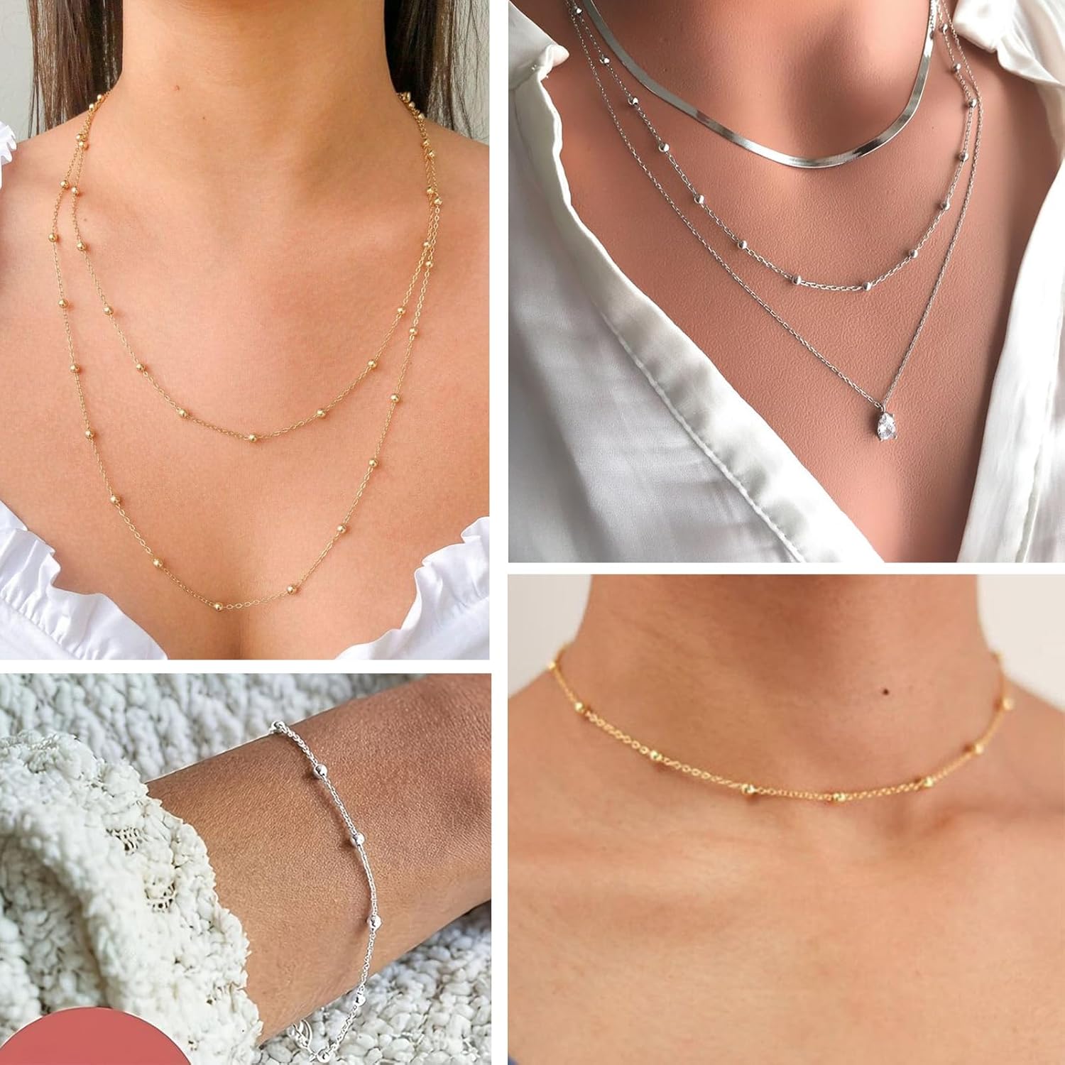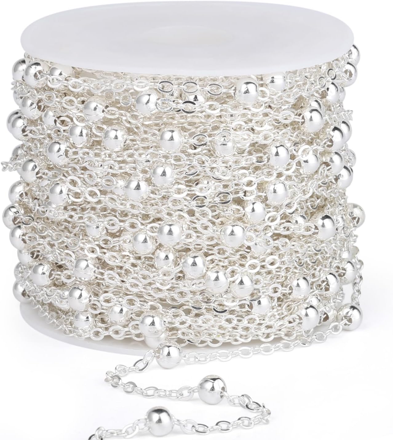 33 Feet Silver Satellite Cable Chains Roll, 2MM Silver Plated Brass Ball Beaded Cable Link Chains Spool Bulk for Jewelry Making DIY Craft