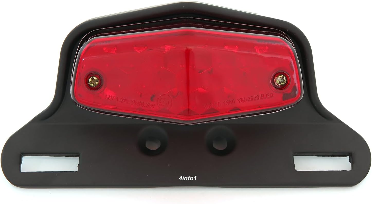 Lucas style cafe racer LED tail light assembly with license plate mount. Perfect for any cafe build, or if you just want a cooler looking tail light. Does not include mounting hardware. Dimensions: Total Width: 7"Total Depth: 5"Total Height: 3 1/2"
