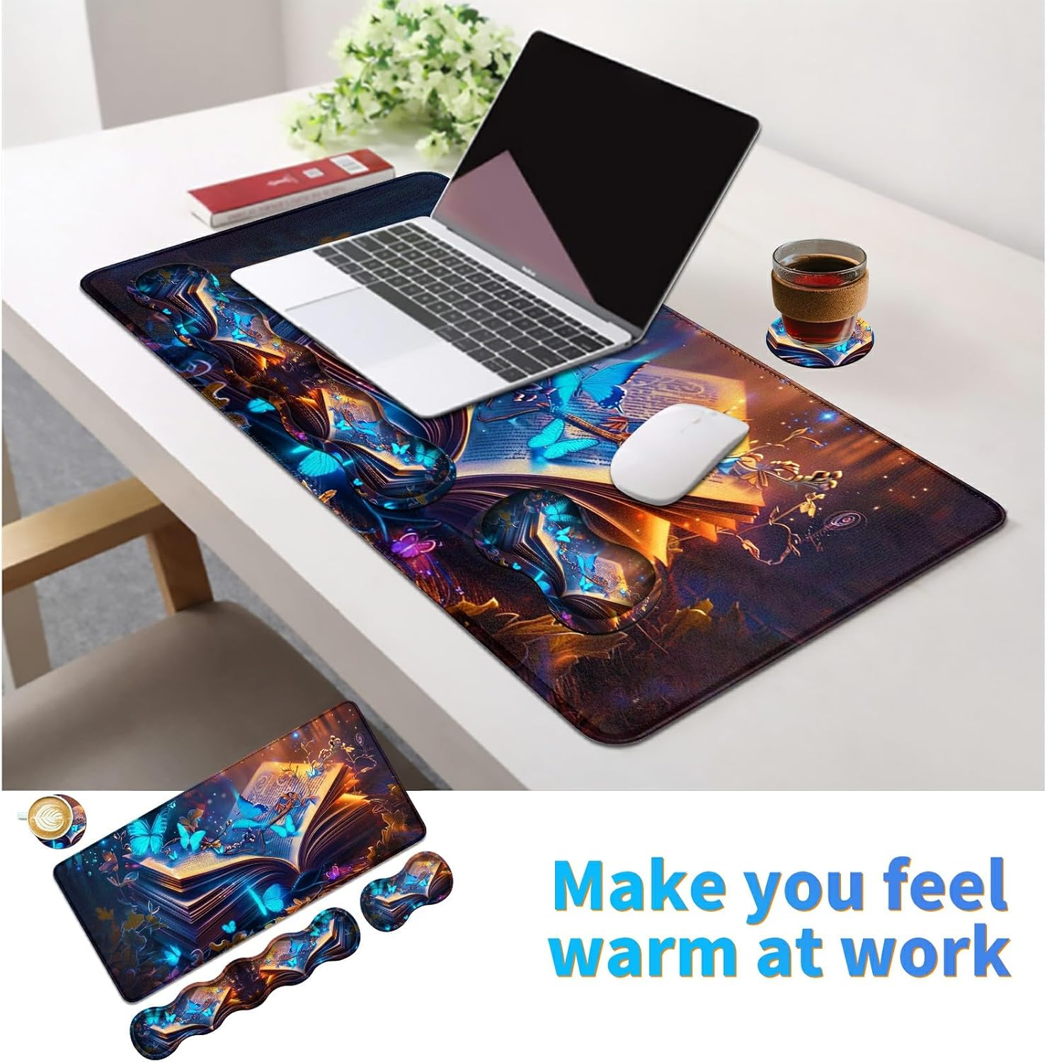 Are you still using flay mouse pad all day? Is your wrist feels a little tired or stiff sometimes? Now it's time to give our comfortable mousepad with wrist support a shot, you will see how amazingly it works. Feature ➪ This is a definitely a good investment. This wrist rest mouse pad and Keyboard Wrist Rest mouse pads helps reduce wrist pain and release working pressure. It is a waist saver for office workers, especially those who do editing work. ➪ When using a mouse you move the mouse in an arc pattern. Then you will understand how smart this design is. This mouse pad is much better than square or rectangular ones. You would move off the pad with square mouse pads. And the rectangular one would add some unusable space. ➪ Mouse pad set is large enough to hold your mouse, keyboard and other desktop items. Improve work efficiency, improve gaming experience, keep the desktop clean and at the same time protect the table top from wear. ➪ The curved design of the wrist rest fits the wrist perfectly. Provide good support for your wrists, and minimize wrist pressure and fatigue. Effectively avoid friction between the wrist and the desktop and prevent injuries to the wrist. ➪ Large mouse pad surface is made of premium-textured smooth lycra cloth with water resistant coating,clear patterns.When liquid splashes on the coating surface, it will form into water drops and slide down. Just need to wipe it with a piece of wet cloth.Easy to clean. Specifications: Mouse Pad Dimensions: Lycra fabric + Gel+PU rubber Mouse pad size: 31.5" x 11.8" Keyboard wrist rest pad size: 17.32" x 3.35" Mouse wrist cushion size: 6.81" x 3.70" Coaster size: 3.9" x 3.9" If you have any questions about our product, please feel free to contact us by e-mail and we will reply your message.