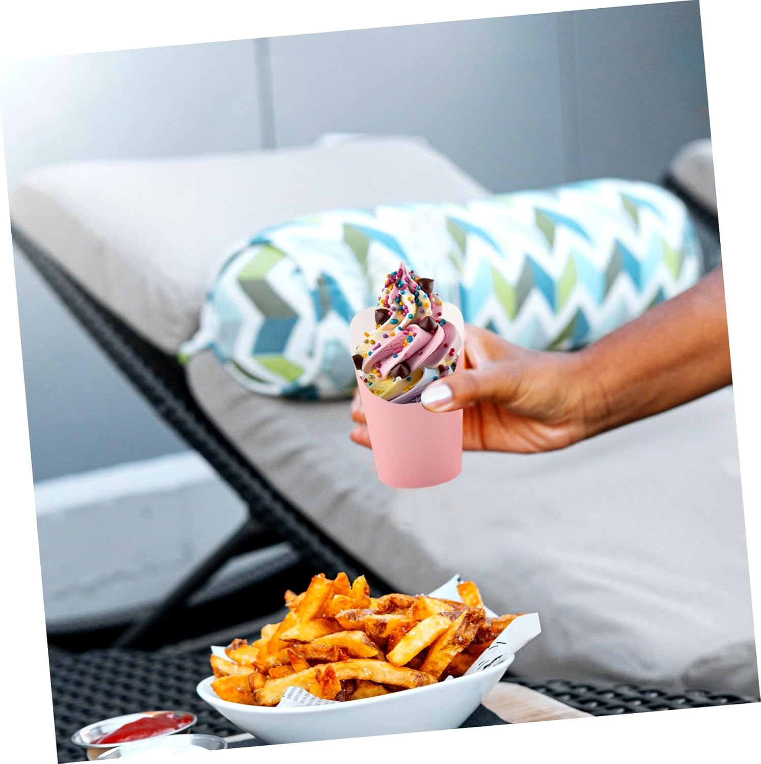 Package List 500 x Disposable Charcuterie Cups Features -Size:11.80X8.00X6.00cm/4.64X3.14X2.36in French Fries Holder -Material:Paper Paper Snack Cups -Capacity:14 oz French Fry Cups -Color:Pink Take Out Food Cups - Shape with wide open and narrow bottom, the french fries box is creative and Multi-function Snack Holders. - Unique shape makes it more adorable and attractive, paper french fries box is suitable for party use Portable French Fry Holders. - Disposable Food Cup is suitable for packaging small food, french fries, chocolate, candy and other snack Daily Use French Fry Holder. - Lightweight, reasonable size, french fries box is very easy and convenient to carry and store Snack Holder. - The disposable french fry holder has a wide top for easy removal and storage of snacks Charcuterie Cups.Goods DescriptionSnack Holder The unique shape allows for easy access to food without the risk of spillage.Take-out Snack Boxes The small size makes it convenient to carry, for outdoor picnics and travels.Small Snack Containers The paper cup is designed to hold various of food such as fries, and ice cream