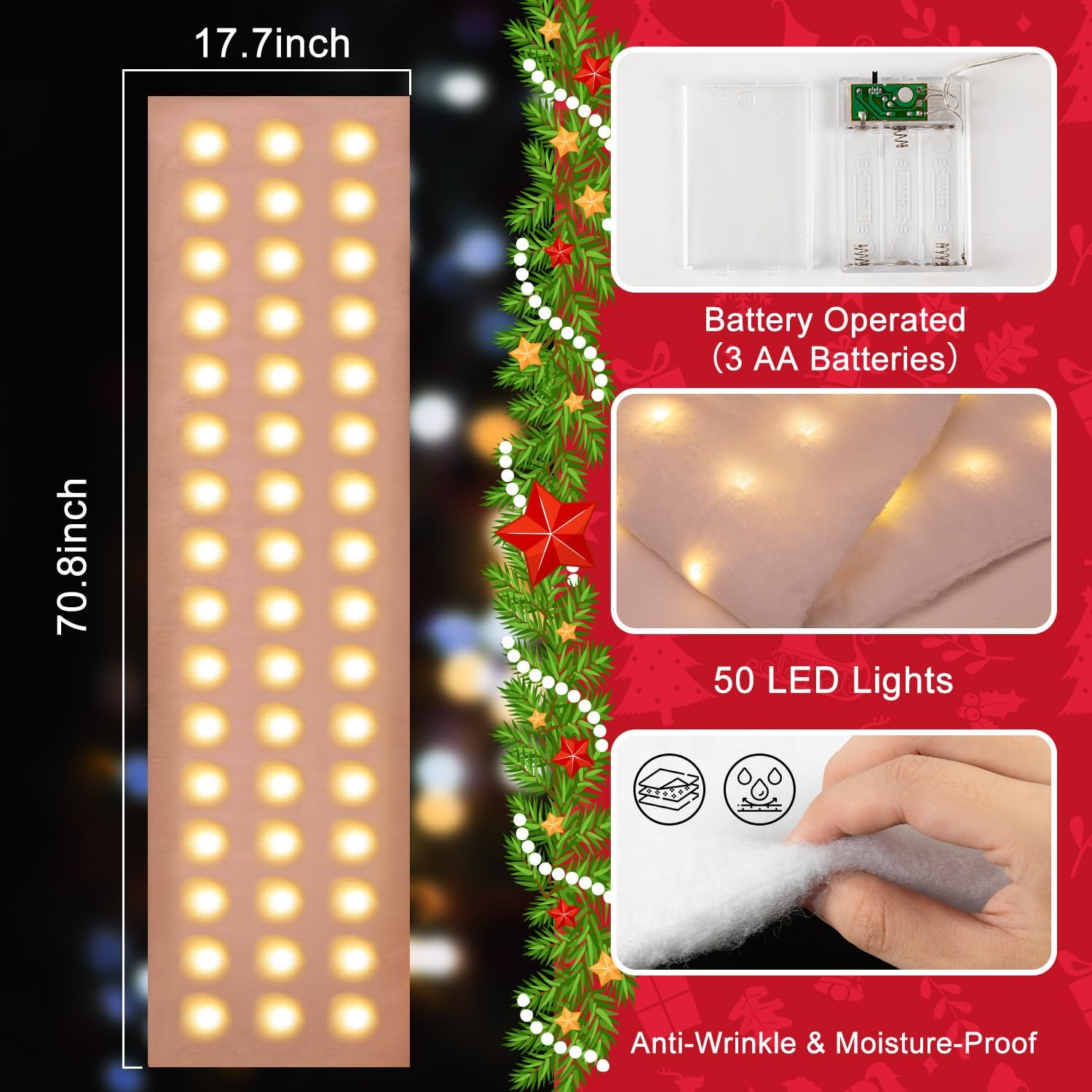 | Additional Features | LED Lights, Fake Snow |