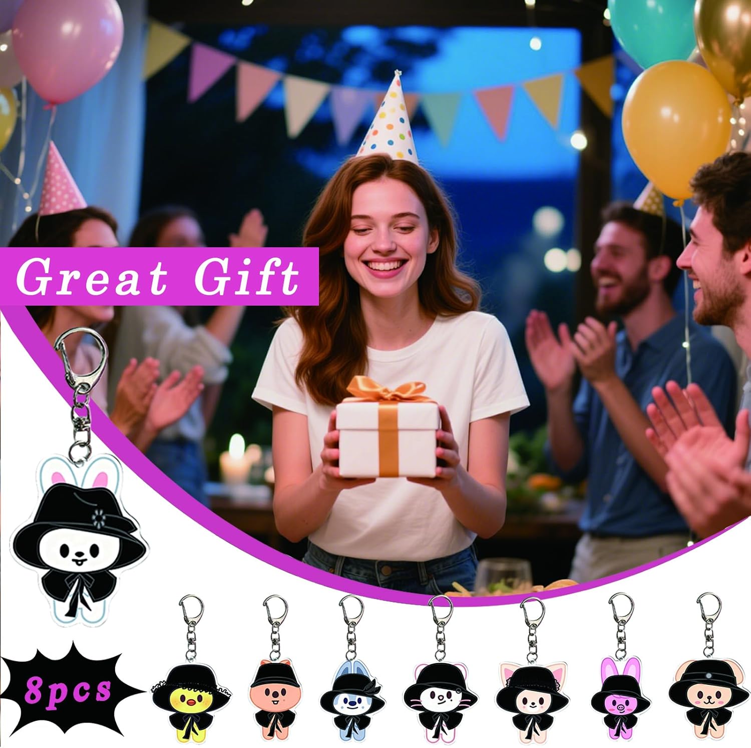 8PCS Stray Keychains Do it Acrylic Keyring Bangchan Felix Pendant Backpack Concert Merch for Stay Fans Gifts Length-5.5cm/2.17IN