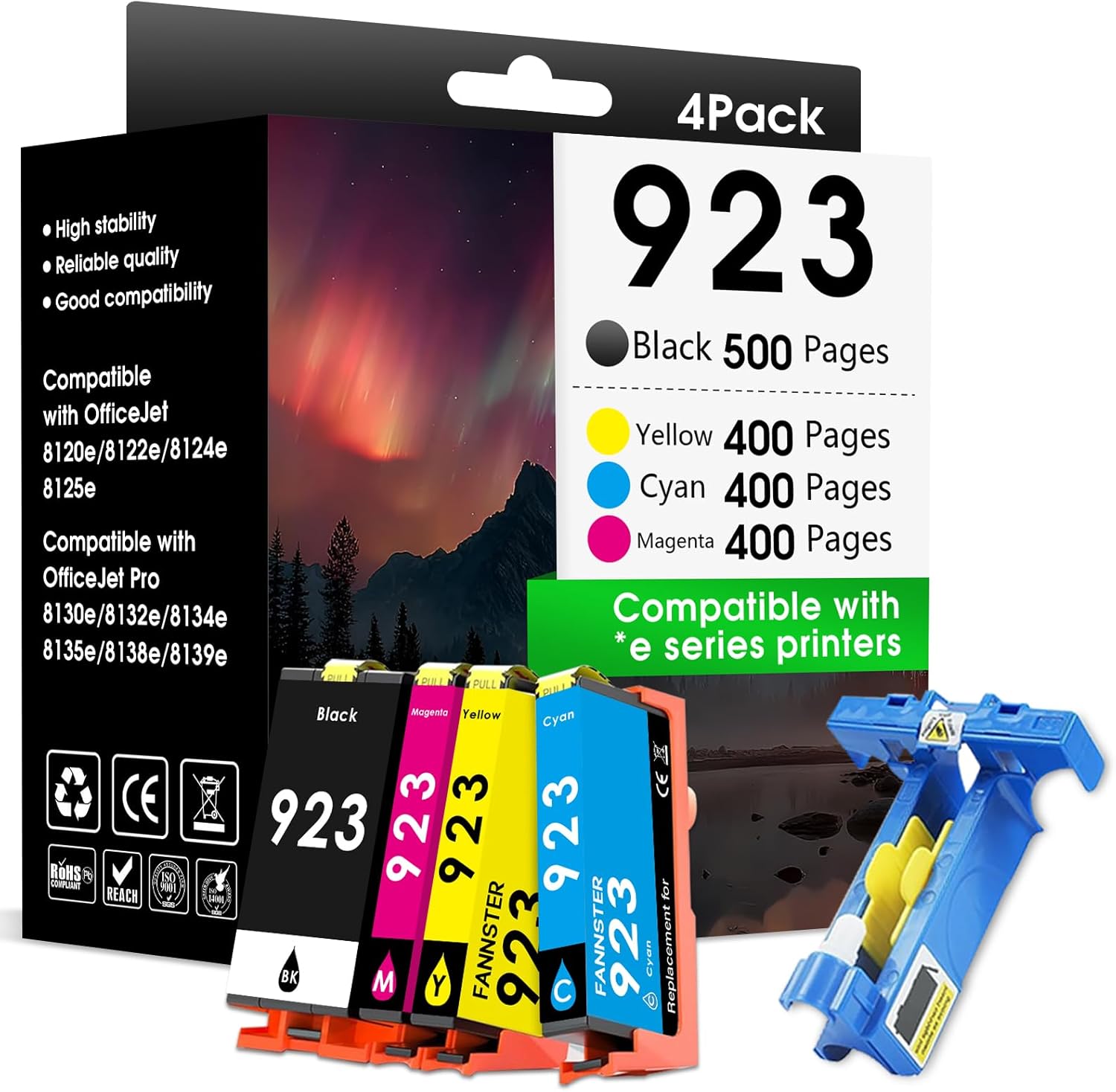 | Compatible Devices | or hp 923xl ink cartridges combo pack work for HP OfficeJet Pro 8135 8130 8139 8138 8122 8120 8124 8125 8130 8132 8134 Printer; work for HP OfficeJet Pro 8120e 8122e 8124e 8125e 8128e 8130e 8132e 8134e 8135e 8138e 8139e Printer๏ผ Not compatible with *e series printers which have enrolled and paid for HP+ (HP instant ink) service |