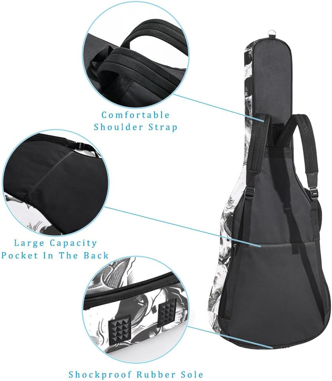 Give your valuable guitar the premium protection it deserves. Our Cute Printed Guitar Gig Bag is engineered for the modern musician who demands both security and convenience. Whether you're heading to a gig, a practice session, or on a short trip, this bag ensures your instrument arrives in perfect condition, ready to play.Constructed from durable, waterproof Oxford cloth, this bag stands up to the elements and the test of time. The interior is a sanctuary for your guitar, featuring ultra-thick padded sidewalls and a soft, anti-scratch lining that cradles your instrument, preventing scratches and damage. The heavy-duty rubber base acts as a shield against everyday bumps and allows for stable placement on any surface.Organization is effortless with multiple dedicated compartments. Two main storage pockets keep all your essential accessories—like a foldable music stand, tuner, picks, cables, and extra strings—neatly sorted and easily accessible. Never fumble for your tablet or sheet music again; the specially designed back pocket keeps them safe and separate.For a perfect, secure fit, the adjustable neck support and internal Velcro strap ensure your guitar does not shift around inside the bag, providing peace of mind with every carry.Care Instructions: To preserve the quality and appearance of your gig bag, please do not machine wash. Simply wipe clean with a damp cloth to remove any dirt or stains.