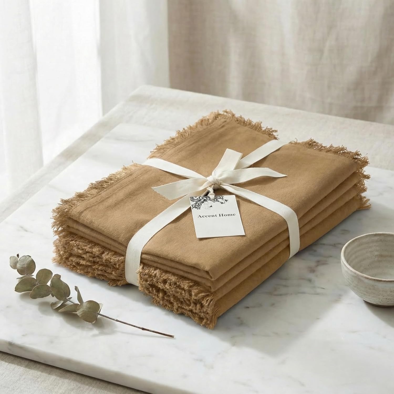 Accent Home Brown 13 x 108 Inches Cotton-Linen Table Runner – Soft, Durable & Natural Blend Rustic Farmhouse Style for Dining Table, Weddings Bridal Shower Thanksgiving Christmas & Everyday Use