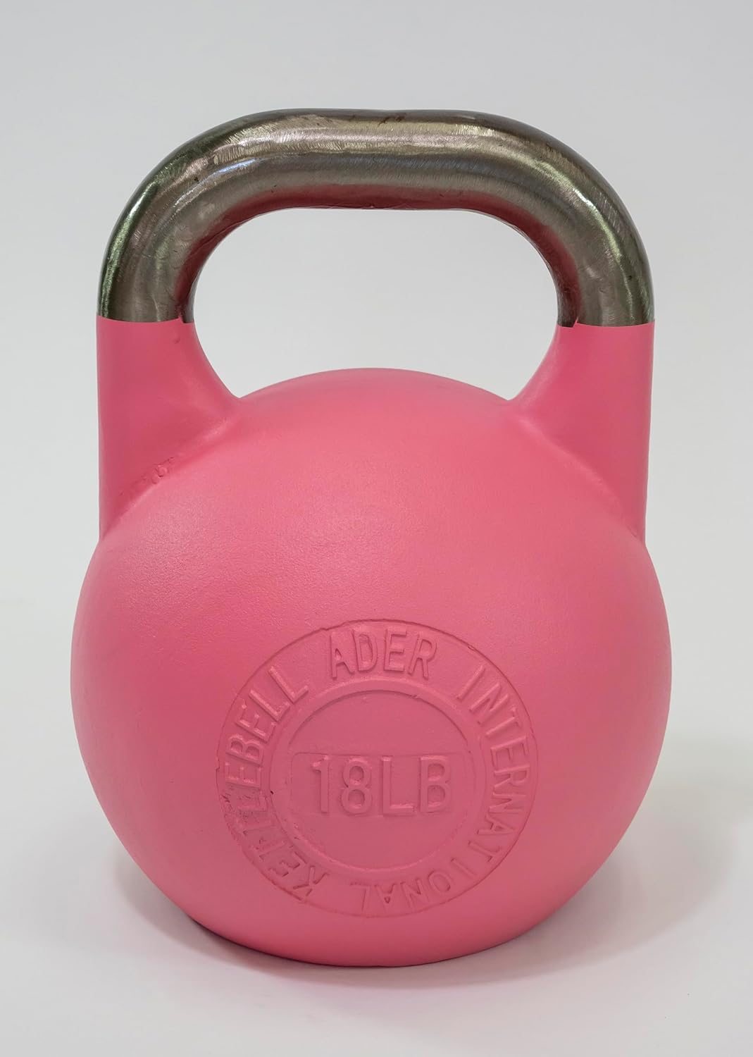 Ader 8kg pro grade international competition kettlebell are all cast steel with no welding feature some of the best designs on the market including wide smooth handle with flat bottoms for stability during push ups and other floor exercises