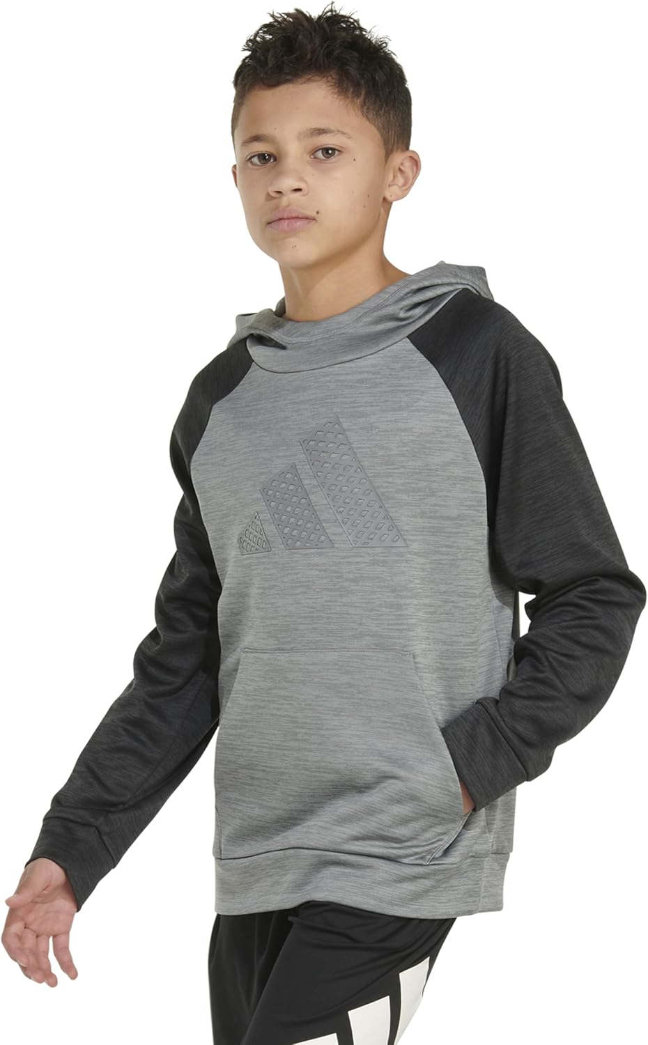 Game-ready comfort, every day style! The adidas Kids Game And Go Hooded Pullover is the perfect blend of sporty flair and all-day warmth. Featuring a regular fit and long sleeves with a cozy hooded neck, this pull-on hoodie keeps your little one warm and ready for action. Contrast sleeves and a textured print logo elevate the look, making it perfect for game day or everyday adventures. Made with ultra-soft fleece, it's so comfortable they'll never want to take it off. Kangaroo pocket. 100% polyester melange fleece. Machine washable.