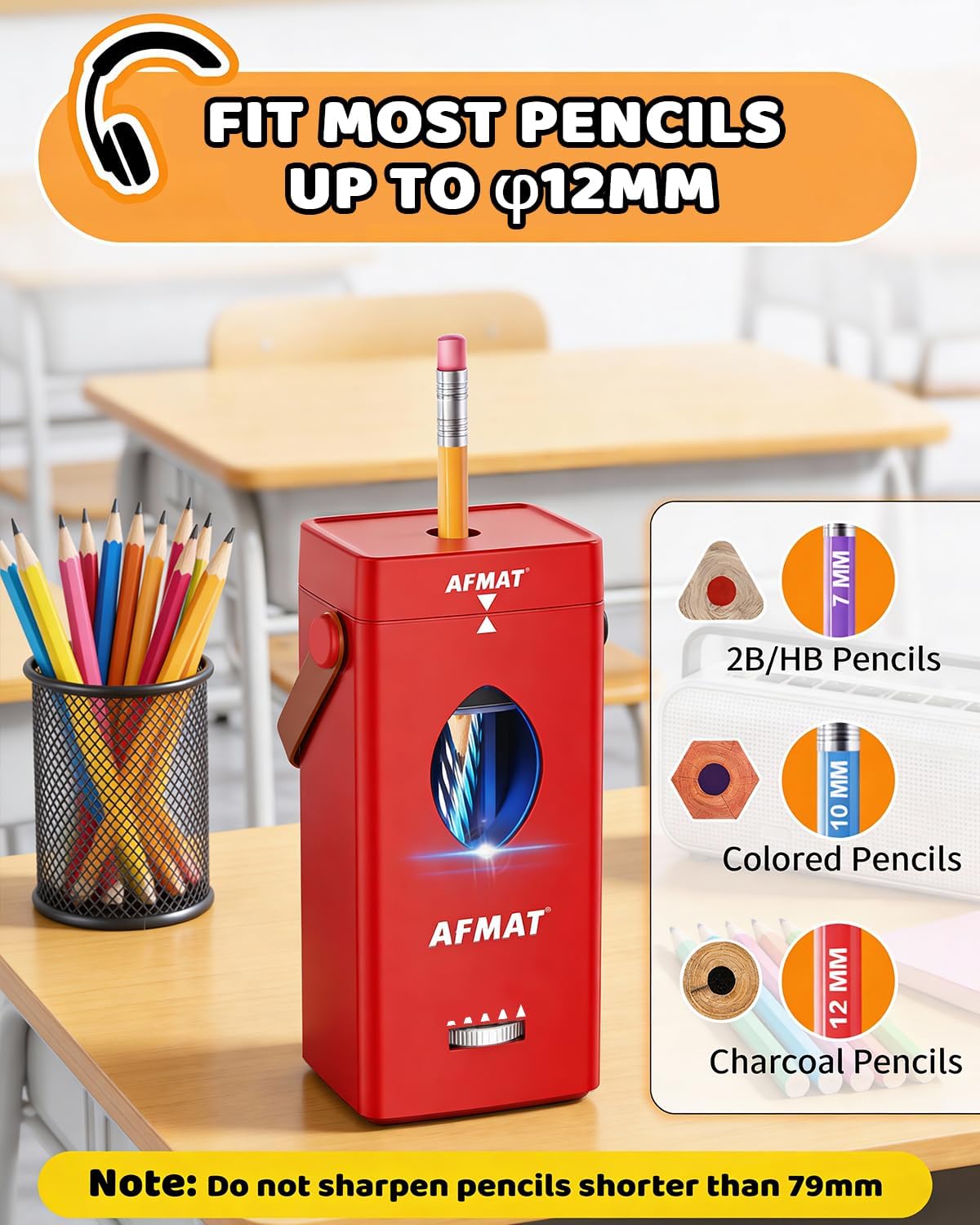 Why Expensive? Here Are The Reasons Why Makes It Worth Your Money: 1. UPGRADED FULLY AUTOMATIC PENCIL SHARPENER: We spent 2 years refining every detail to deliver peak performance and simplify your sharpening routine—simply insert your pencil vertically and gently press it to trigger the motor on, the pencil sharpener will auto feed in and sharpen automatically in seconds, then auto eject the pencil. This hands-free fully automatic pencil sharpener is a true game-changer - ensures hands' safety and avoids hand pain, making it a safer, quicker, and smarter choice for study, office, or art. 2. LARGE HOLE COLORED PENCIL SHARPENER: Equipped with a large-diameter sharpening hole, this pencil sharpener fits almost all pencil types and shapes, including 2B/HB, wood-cased graphite/colored pencils, as well as standard round, oval, and hexagonal shapes(within φ12mm). This makes it a truly universal pencil sharpener. While sharpening, the optimized mechanism will try its best to keep your pencil centered to avoid uneven tips, perfect for artists, professionals, and teachers. (Note: Pencils shorter than 79 mm cannot be sharpened; if there are uneven tips, please check if the pencil core is off-center) 3. INNOVATIVE 5 ADJUSTABLE SHARPNESS PENCIL SHARPENER: Unlike most automatic pencil sharpeners that only offer 3 sharpening settings, this sharpener features an innovative 5 sharpness adjustable settings. This electric pencil sharpener allows you to select from 5 pencil tip sizes to meet various needs like writing, sketching, technical drawing, and shading. It is a comprehensively functional electric pencil sharpener adapts to students' homework, teachers' lesson plans, and artists' creations. Note: For soft pencils, please choose the last three blunt settings to avoid pencil lead breakage. 4. PENCIL SHARPENER WITH FAST & QUIET SHARPENING: Enjoy lightning-fast, quiet sharpening experience, this electric pencil sharpener sharpens a used pencil in just 4 seconds and a brand-new pencil in 6 seconds, all while operating with low noise. Whether you're prepping pencils for a lesson in a classroom or tackling a creative project, this pencil sharpener for classroom cuts down waiting time drastically, ensuring you never pause for a dull pencil again - Far quicker than traditional manual pencil sharpeners. 5. DURABLE PENCIL SHARPENER FOR CLASSROOM: The industrial grade helical blade of this pencil sharpener is engineered to be extremely tough for extended longevity up to 7000 sharpenings without wearing, delivers 2x longer lifespan than standard sharpeners, an ideal, economical electric pencil sharpener for heavy use in classroom full of students - Teachers must have. The blade is replaceable. ASIN for blade: B0G4TZX4F5 6. RECHARGEABLE ELECTRIC PENCIL SHARPENER: This cordless pencil sharpener equipped with a safe rechargeable battery, delivers reliable performance without the hassle of cords. One 2-hour charge supports up to 600 sharpenings, meeting your usage needs. (recommends 5V 2A adapter; power adapter not included) As a reliable pencil sharpener for classroom, it ensures uninterrupted service throughout long school days, letting you focus on sharpening, not charging. 7. PORTABLE & SPACE-SAVING PENCIL SHARPENER: With its integrated carry handle and cordless design, this electric pencil sharpener is the ultimate on-the-go sharpening tool. And its vertical design saves space, making it an ideal companion for the classroom, studio, office desk, or creative work on the go. This portable colored pencil sharpener, providing professional sharpening support anytime, anywhere. Wherever inspiration strikes, it delivers a perfect point.
