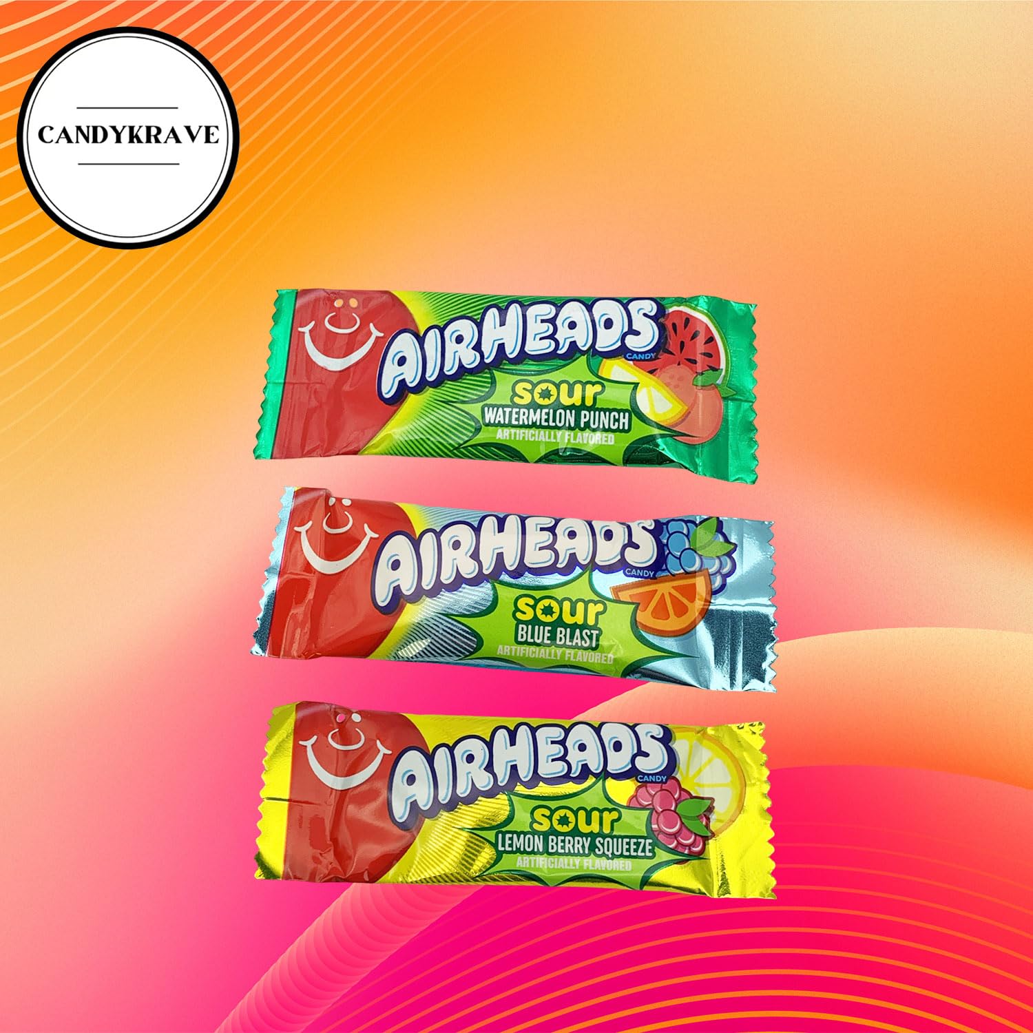 Chewy. Mini. Mouthwateringly sweet. Introducing “Airheads Sour Mini Bars Candy”, individually wrapped fruity flavored bliss. This 2 lbs candy pack features tantalizing sour Lemon Berry, Watermelon Punch and Blue Blast flavors, ready to excite your taste buds. Recognized for their bold flavors, bright hues, and playful packaging, each candy mini bar comes in colorful packaging, ensuring a burst of freshness with every bite. They are soft and pliable and have an easy chew with a light, sugary crunch. The candy's versatility shines through as it becomes a festive addition to holiday gatherings, a cherished favor at events, or a simple joy during movie nights. The vivid colors and flavors add an extra layer of fun to birthdays, making them a hit with both kids and the young at heart. Stock up on these Sour Candy Mini Bars with the 2 lbs bulk bag and transform ordinary moments into extraordinary experiences. Let the fruity goodness be the highlight of your celebrations, creating memories and smiles one mini bar at a time. Product Note: Exposure to heat or sunlight may lead to melting/damage of product.