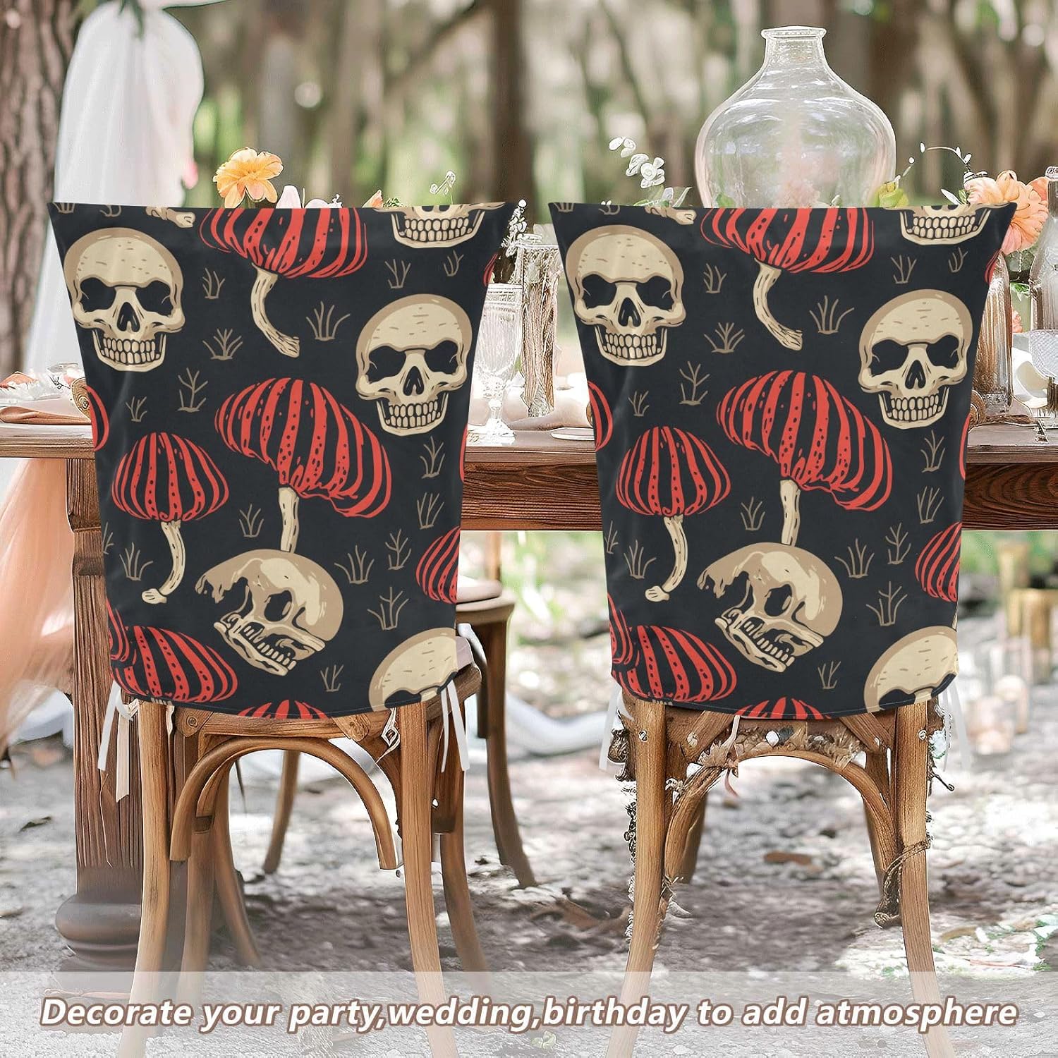 Chair Cover Material made of polyester,comfortable and soft to touch,reusable and suitable for long term use Features easy to install and remove, tie rope design at the bottom,machine washable Stylish Chair Decoration With beautiful pattern,it can be used for family party/ birthday party/wedding/ holiday party to add atmosphere, also can be used for chair decoration in living room, dorm, kitchen dining room,bedroom to bring protection to the chair while avoiding stains to dirty the chair back. Easy To Care Machine washable, Not washing with hot water, Not bleaching