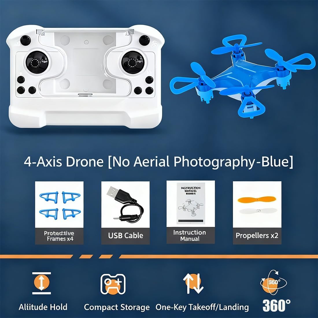 Unlock Epic Adventures: The Ultimate Pocket-Sized Drone for Thrilling Stunts & Easy Fun Features: 1.Ultra-Compact, Fits in Pocket 2.One-Button 360° Flips & Stunts 3.Easy Takeoff/Landing for All 4.Durable ABS Crash-Proof Design 5.Perfect Gift for Kids & Adults Specifications: Colors: Blue, Black Size: 14.5*10.5*8.5cm / 5.70*4.13*3.34 inches Weight: 170g Material: ABS Flight Altitude: Up to 60m Battery Capacity: 250mAh Breaktime: 6-8 minutes Charging Time: 30 minutes Package List: 1Pc * Little Aerobatic 4-Axis Drone 1 Pc * Remote Control 4 Pcs * Protective Stand 1 Pc * USB Charging Cable Notes: 1.Due to manual measurement, please allow a difference of 1-5g/1-2cm 2.Due to different displays and different lighting, the picture may not reflect the actual color of the item. Thank you for your understanding Our Promise to You: We value every customer response and offer friendly customer service We sincerely hope you could enjoy the purchase and enjoy your life carry with our premium products