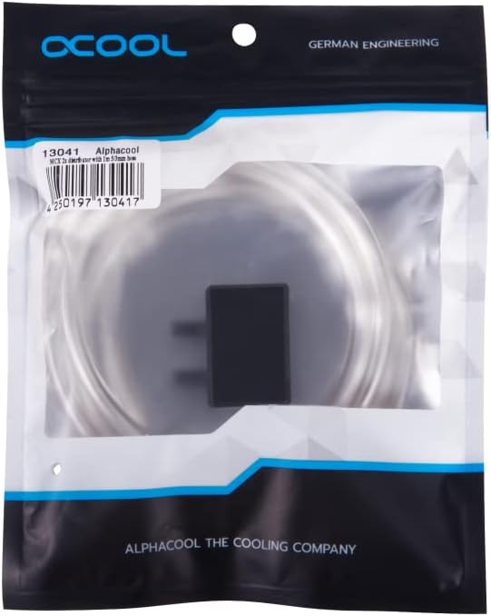 Flexibility and design with optimal performance! The Alphacool MCX 2x distributor made of acetal offers various areas of application.It opens up the possibility to easily integrate Alphacool's active backplates or MCX water coolers into the water circuit. This allows e.g. RAM devices and voltage converters on graphics cards to be cooled more efficiently. The integration of the MCX 2x distributor into the water circuit is uncomplicated via 2 G1/4" connections with internal thread. Alphacool's connections from the Eiszapfen series are recommended here. A transparent 5/3mm PVC hose is included in the delivery. With a length of 1m, the hose offers sufficient leeway for a flexible installation of the distributor.Technical dataL x W x H distributor30 x 29 x 18 mmMaterial distributoracetalLength hose1 mHose size5/3mmMaterial hosePVCConnections2x G1/4" inner thread2x hose nozzles 3mm screwed inMax. Thread length G1/4" Connections 5,5 mmMax working temperature60 °CPressure tested0,8 BarWeight28 gColorblack