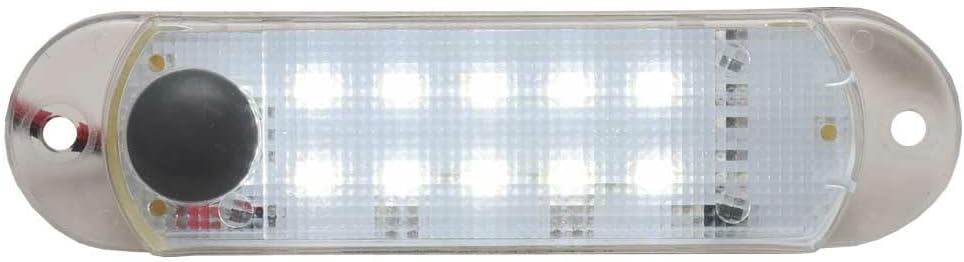 Boat part number 1116384 is a new dome light from American Technology Components, part number AT-LED-12V. Commonly used on Viaggio pontoons, but may be used on other boats.This dome light is constructed out of clear plastic with white LEDs. It measures approximately 4 1/2" L x 1" W x 1/2" H overall. Mounts with (2) 1/8" Dia. mounting holes set apart 4" center to center. Rated for 12V and connects with (2) raw wire leads.Specifications: Boat Manufacturer: ViaggioPart Number: UnavailablePart Manufacturer: American Technology ComponentsPart Number: AT-LED-12VMaterial: PlasticColor: ClearLED Color: WhiteElectrical Rating: 12VOverall Dimensions: 4 1/2" L x 1" W x 1/2" HMounts: (2) 1/8" Dia. mounting holes set apart 4" CTCConnections: (2) Raw Wire Leads Sold as seen in pictures. Customers please note every computer shows colors differently. All measurements are approximate.Hardware and instruction / installation manual not included.