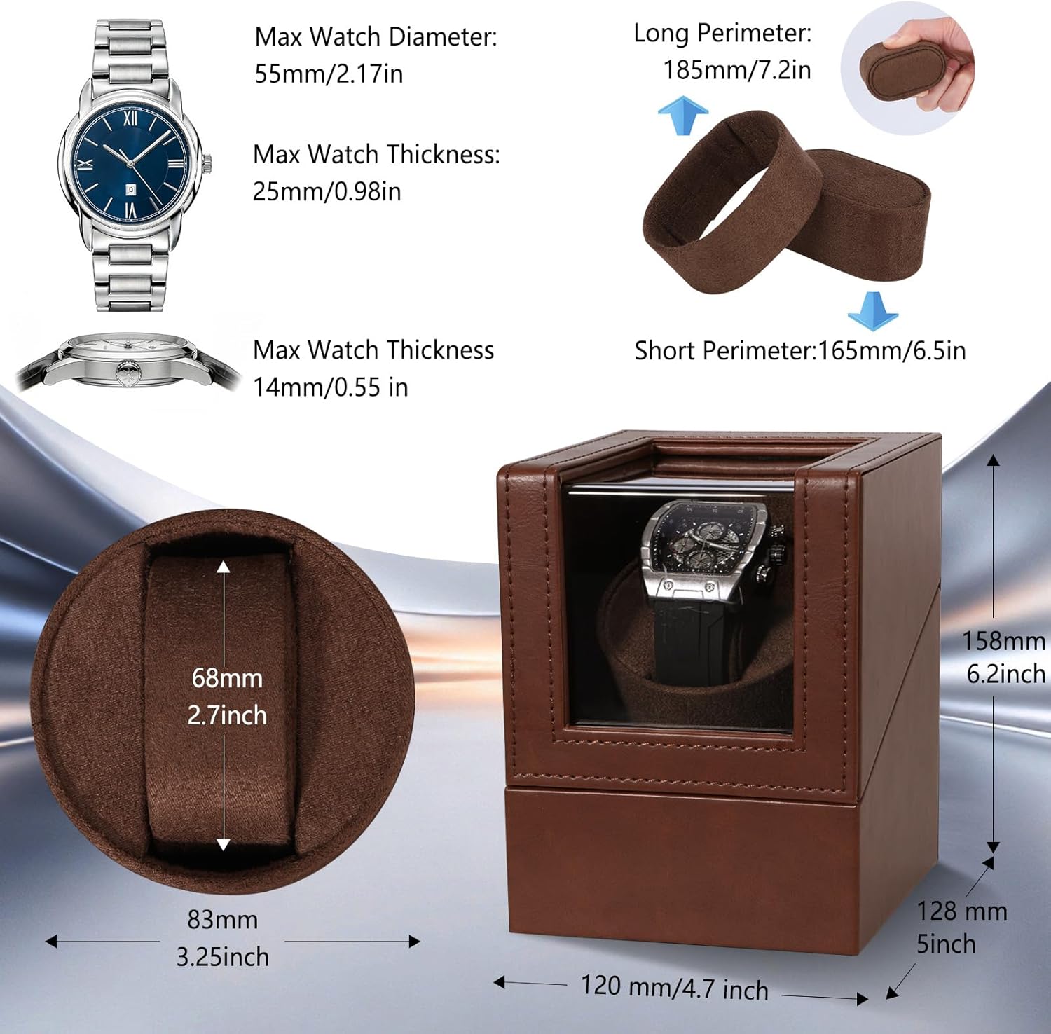 Our automatic watch winder is meticulously handmade from premium materials like carbon fiber leather, MDF, and clear acrylic glass for durability and a luxurious touch. It ensures perfect protection for your watch