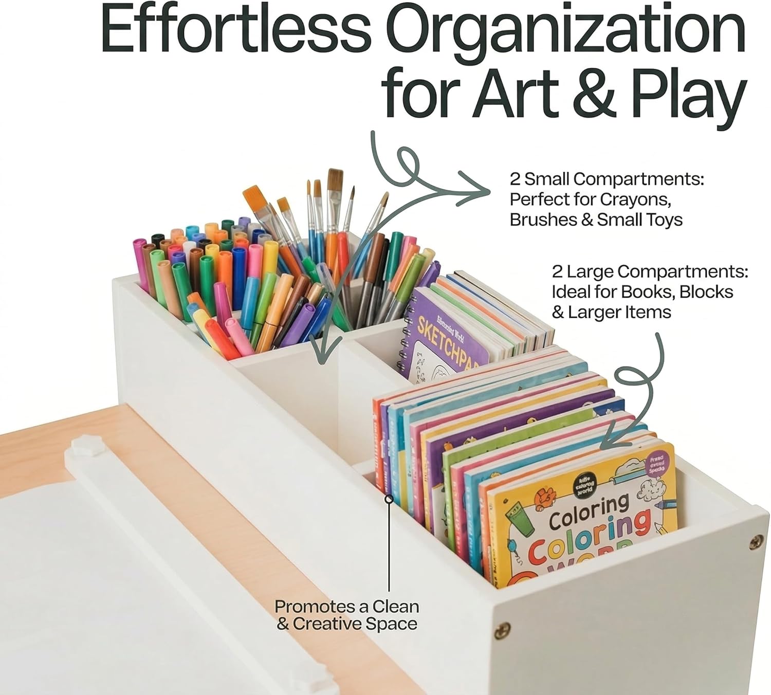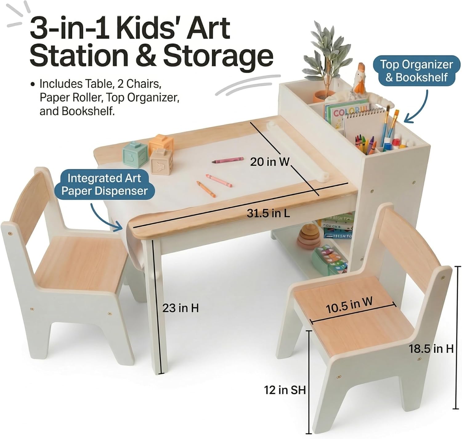 Discover the ultimate creative space for your little ones with our Kids Art Table, an essential addition to any playroom or classroom. This versatile kids craft table and chairs set is designed with toddlers and young children in mind, providing the ideal height and comfort for hours of imaginative play. Crafted from reliable materials, our kids activity table and chairs are built to withstand the rigors of daily use, making them a durable choice for any setting. The stylish design of this wooden table for kids blends seamlessly into any décor, ensuring it complements your home while providing a dedicated space for creativity. With integrated storage compartments, this kids art table with storage keeps art supplies and toys organized, making it easy for children to access their materials and keep their play area tidy. Whether used as a toddler play table and chair set, a kids play table and chair set, or a children's craft table, this versatile piece is great for various activities, from arts and crafts to snack time and homework. Elevate your child's play space with this elegant and functional kids table and chair set, designed to inspire creativity and independence.