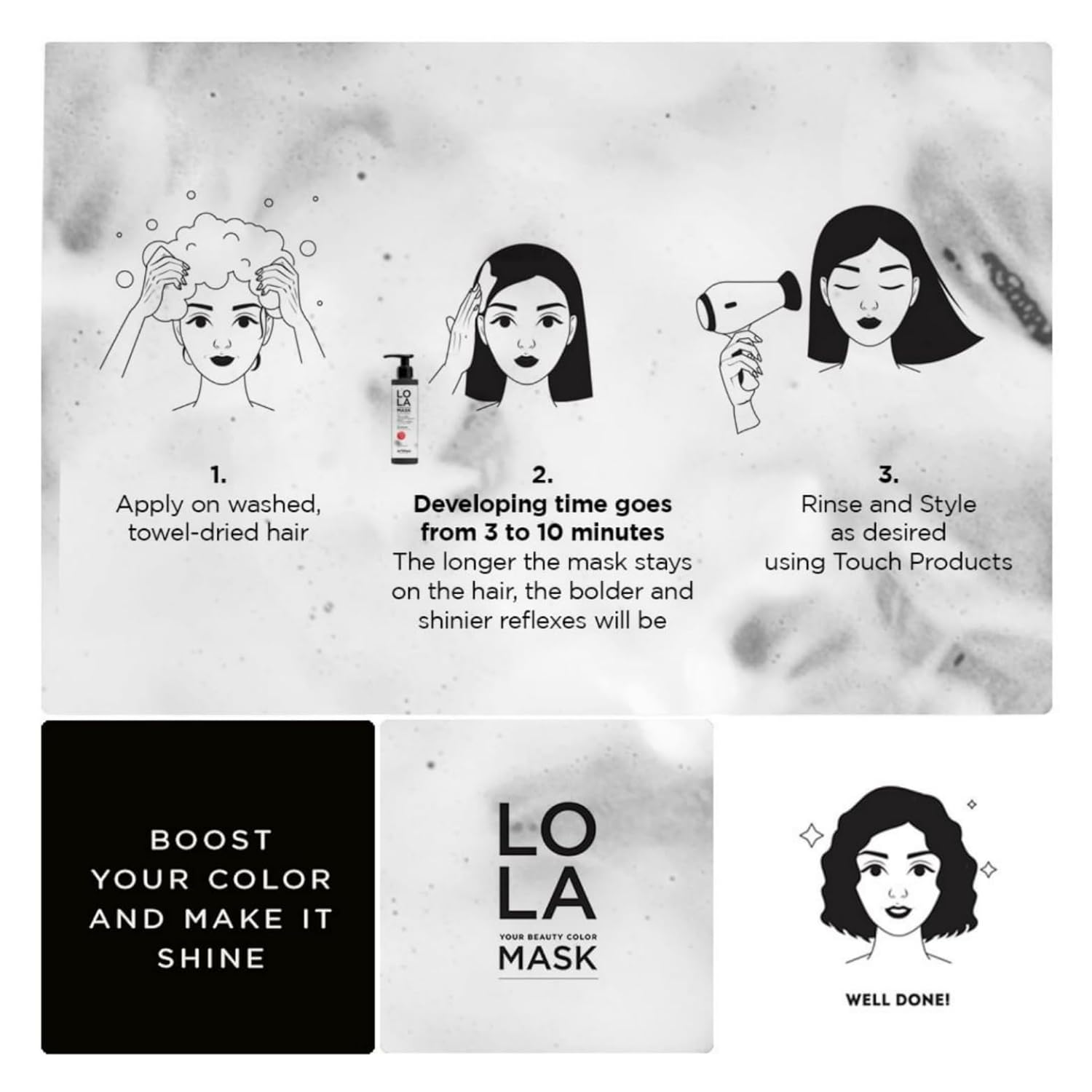Bring your hair color back to life with LOLA Your Beauty Color Mask—a tone-on-tone color treatment that revives, refreshes, and enhances your color with intense shine and softness. Crafted in Italy with 94% naturally derived ingredients, this nourishing mask blends vibrant pigments with plant-based actives like Vegetable Collagen, Hemp Oil, and Jojoba Esters to deeply condition and illuminate every strand. Whether you're boosting your shade, correcting unwanted tones, or just craving that “wow effect,” LOLA delivers color that looks fresh and hair that feels silky-smooth. The creamy texture and delicate heliotrope scent—infused with powdery, almond, and slightly spicy notes—transform your color care into a true self-care ritual. Available in 8 stunning shades to suit your tone and mood. Clean, color-loving, and sensorially indulgent. Just apply, wait 3–10 minutes, rinse, and glow.