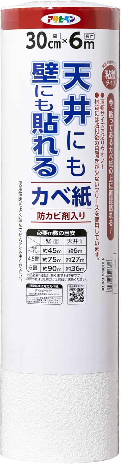 (Can be attached to ceilings) Easy to apply over wallpaper For mounting wallpaper and ceilings. Surface that can be applied to: Ceiling and cabbage surfaces such as vinyl cabbage paper, paper wallpaper, plywood, plaster walls, matte painted surfaces, glossy painted surfaces, decorative plywood, etc. Surfaces and places that cannot be sticked: Cloth wallpaper, ceiling vanity board (such as Zipton), sand wall, solid wall, bathroom, outdoor [Precautions] Depending on the production lot, there may be slight differences in color and appearance. ● Due to the nature of the product, there may be some winding gouges. If there are streaks that appear to be raised after the step applied, please gently blow the hot air from the dryer to solve it. ● May not adhere to some rough surface vinyl wallpaper or wallpaper with special surfaces that do not stick to cellophane tape. When applying to decorative plywood or glossy painted surfaces, polish the surface with a sandpaper (#180-#280). Wipe the scraper thoroughly before applying the wallpaper. If the base is dirty, the adhesive strength will be reduced. Repositioning it over and over again may result in a bad adhesion. Please be aware that if you pull the wallpaper tightly during work, the seams may open after pasting. Please ventilate it during and after pasting.