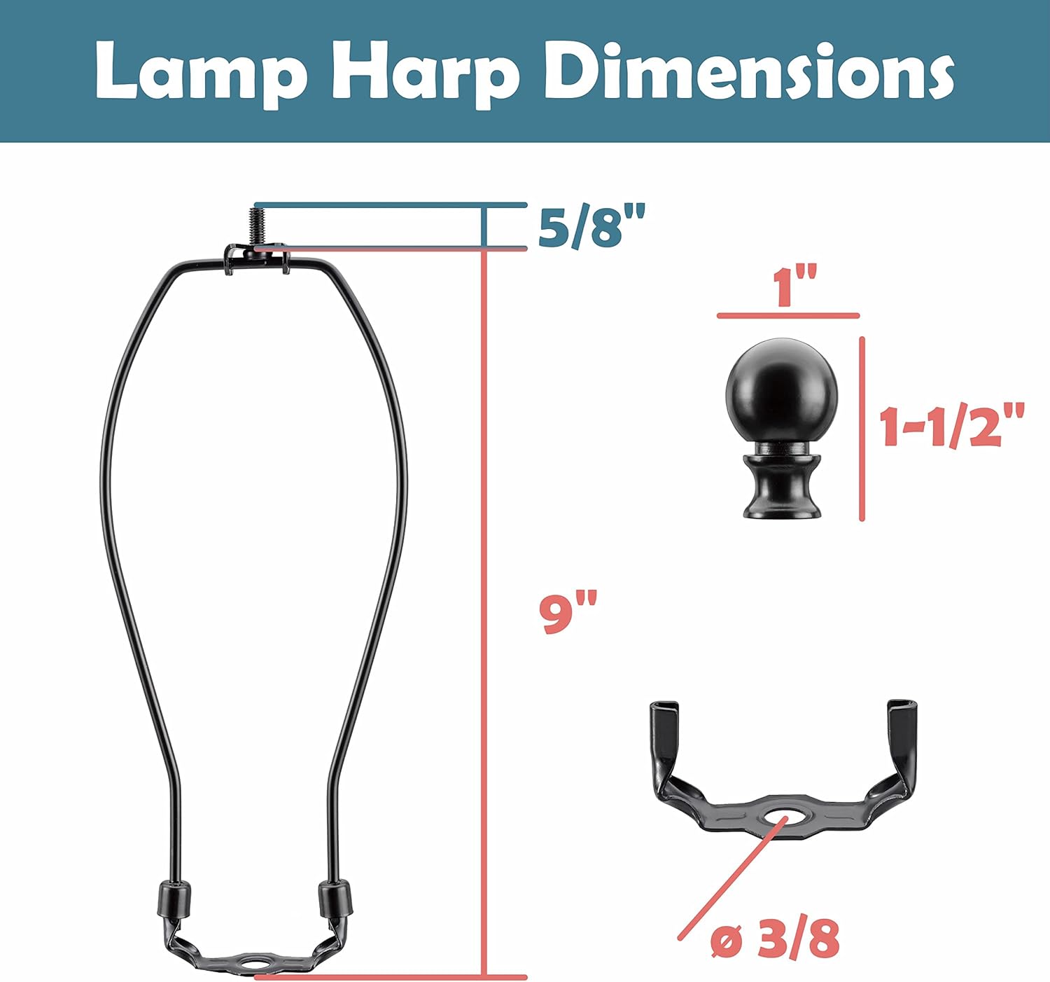 | Included Components | Solid Steel Bumped Cylinder Finial/Saddle, 9-inch Harp (Matte Black) |