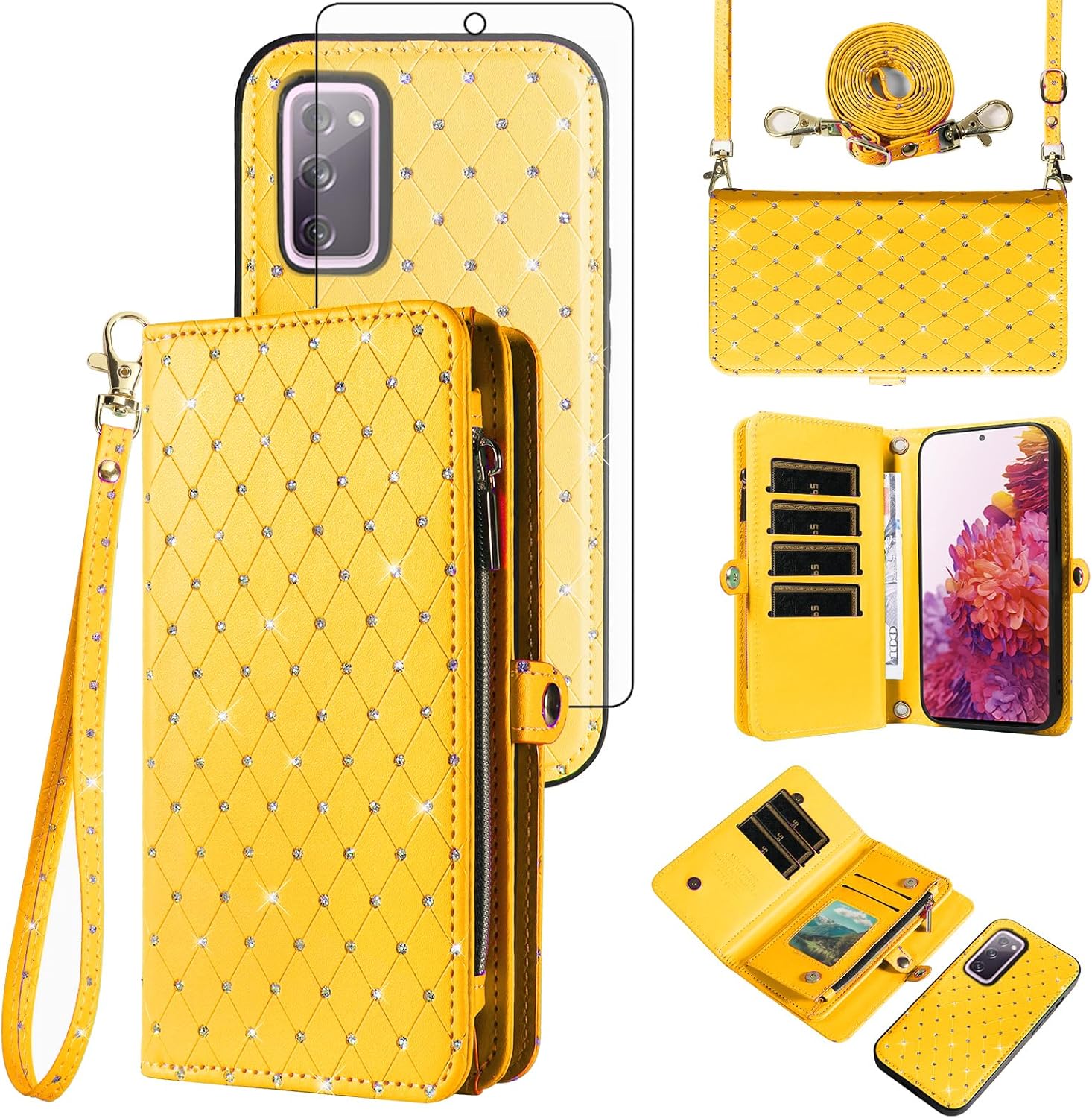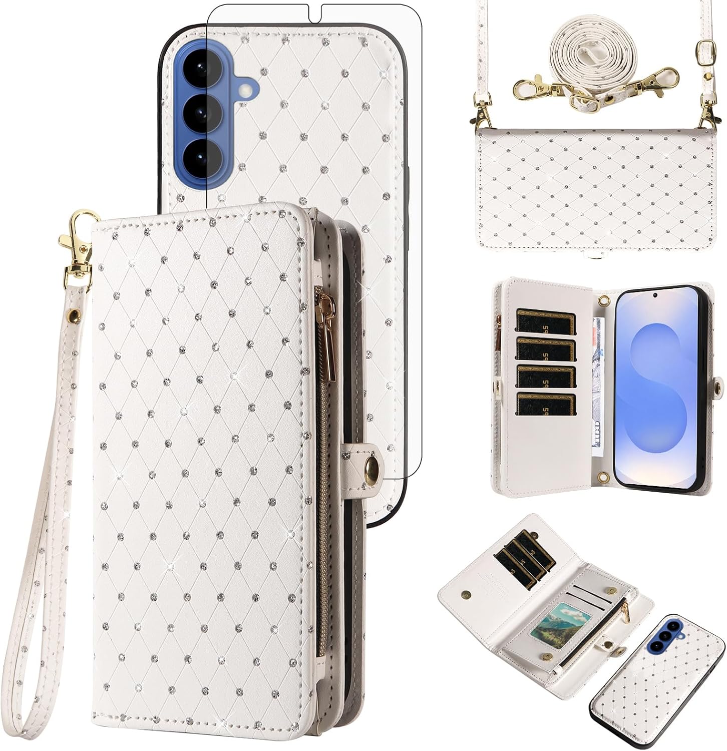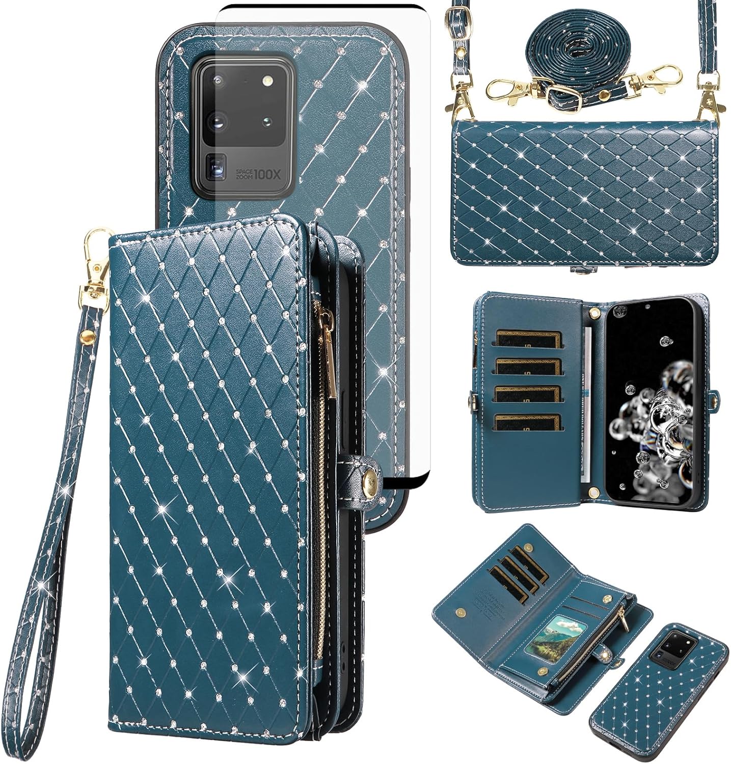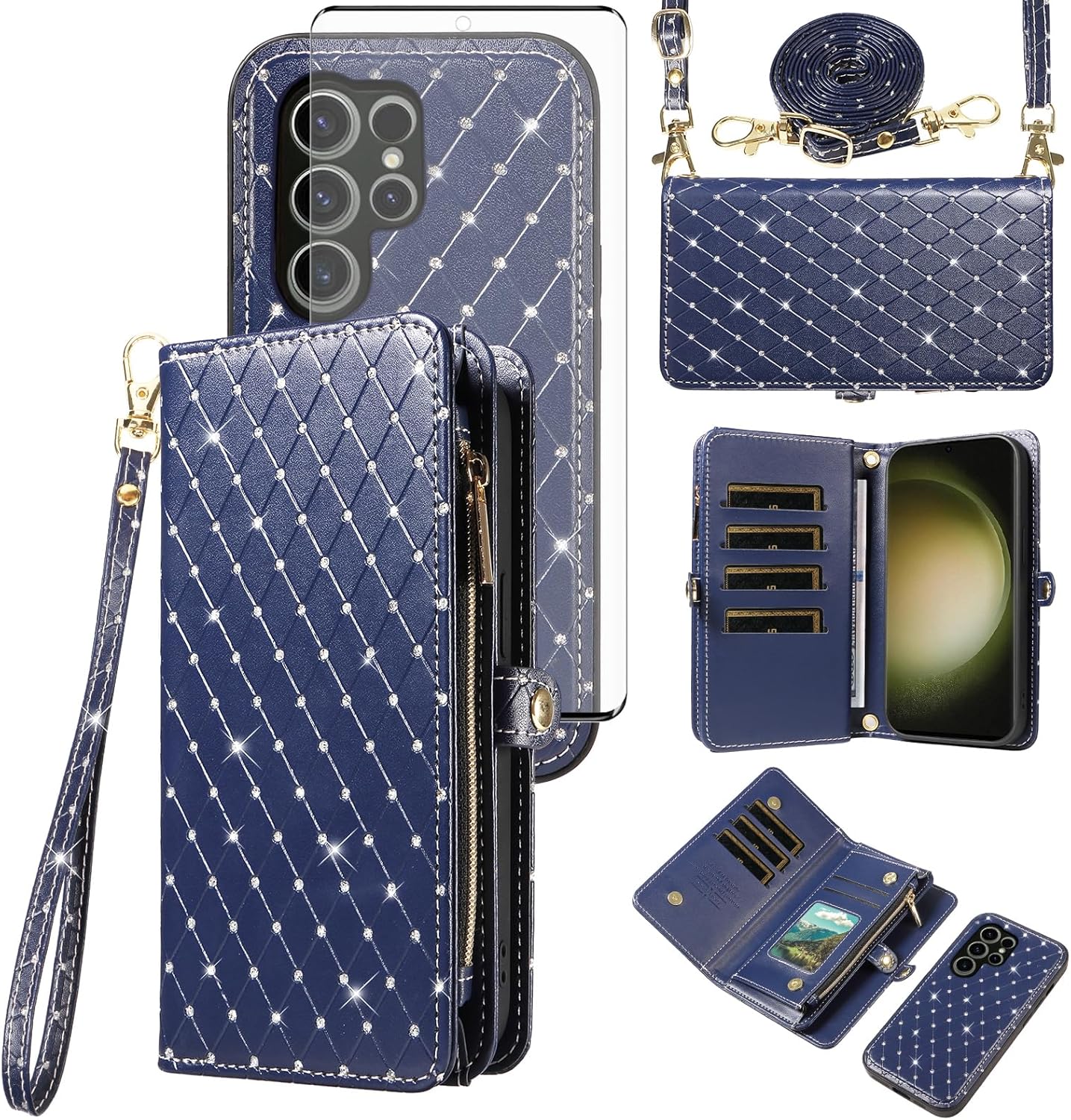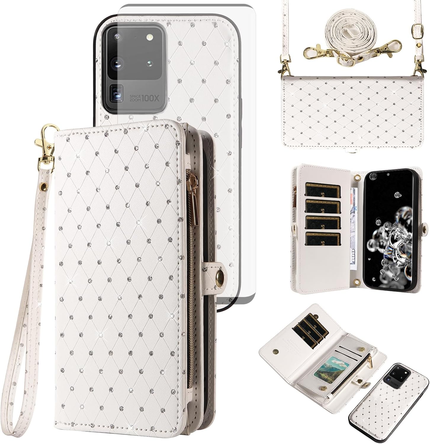 【Compatible Models】: Compatible with Samsung Galaxy S22 5G (6.1 inch), NOT compatible with other devices.【Package includes】: We will send the phone case with 1 piece tempered glass screen protector + 1 detachable wrist strap + 1 detachable crossbody strap. It would be a nice gift for your lover, your family and your friends.【Support Detachable & Magnetic Car Mount】: You could use the removable back cover as a simple protective back cover alone, the back cover with built-in metal disk can be attached to a magnetic car phone holder, but please notice that it don't work with wireless charging.