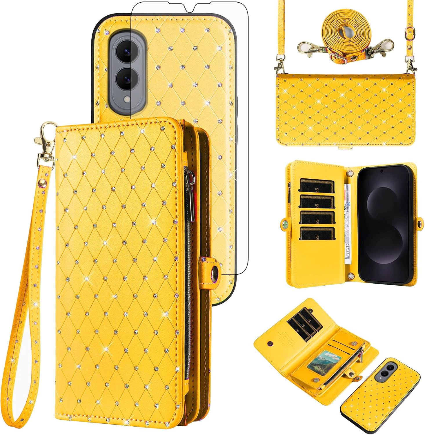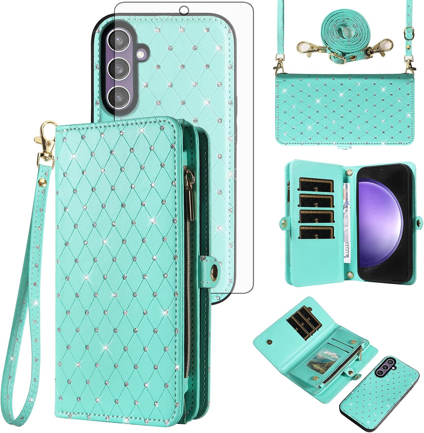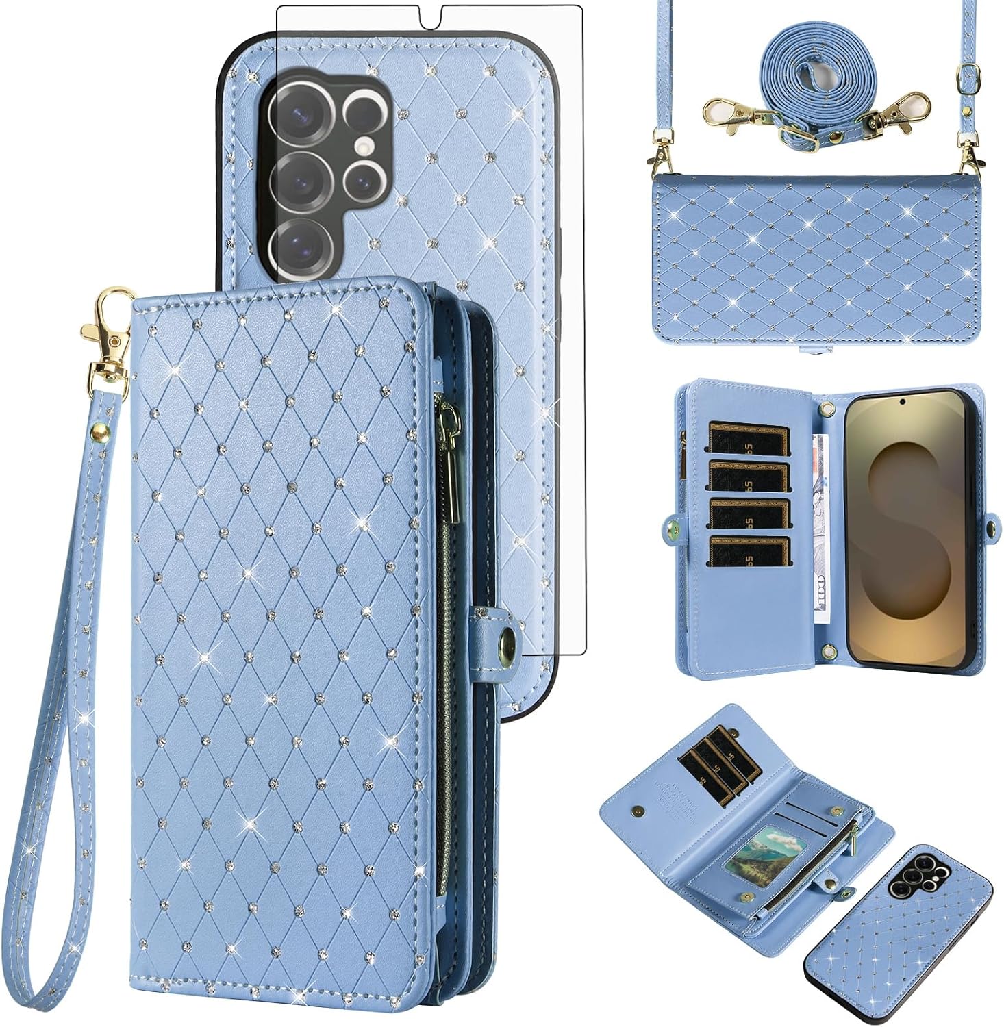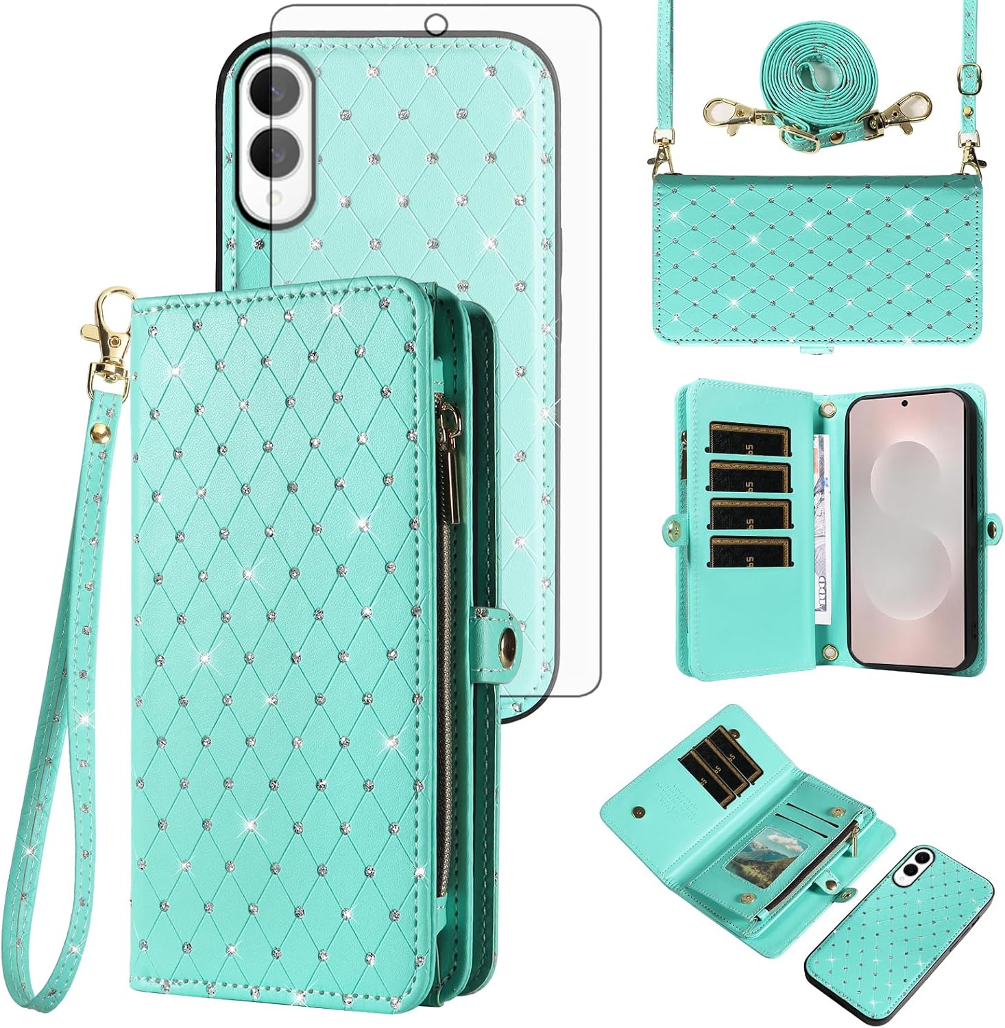 【Compatible Models】: Compatible with Samsung Galaxy S22 5G (6.1 inch), NOT compatible with other devices.【Package includes】: We will send the phone case with 1 piece tempered glass screen protector + 1 detachable wrist strap + 1 detachable crossbody strap. It would be a nice gift for your lover, your family and your friends.【Support Detachable & Magnetic Car Mount】: You could use the removable back cover as a simple protective back cover alone, the back cover with built-in metal disk can be attached to a magnetic car phone holder, but please notice that it don't work with wireless charging.