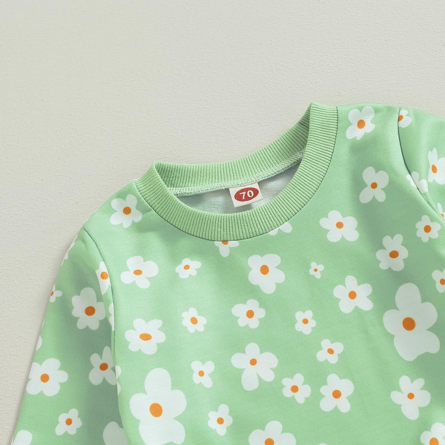 Toddler Baby Girls 2 Piece Sets, Flower Print Long Sleeve Crew Neck Sweatshirt with Elastic Waist Sweatpants Fall Winter ClothesSize ChartSize(inch)70 Tops Length: 11.81 Bust: 19.69 Pant Length: 14.57 Waist: 14.17 Suggest Age: 0-6 Months80 Tops Length: 12.60 Bust: 20.47 Pant Length: 15.75 Waist: 14.96 Suggest Age: 6-12 Months90 Tops Length: 13.39 Bust: 21.26 Pant Length: 16.93 Waist: 15.75 Suggest Age: 12-18 Months100 Tops Length: 14.17 Bust: 22.05 Pant Length: 18.11 Waist: 16.54 Suggest Age: 18-24 Months110 Tops Length: 14.96 Bust: 22.83 Pant Length: 19.29 Waist: 17.32 Suggest Age: 2-3 YearsSpecificationItem Name: girl's pants setColor: brown, purple, pink, greenMaterial: 70% cotton, 22% polyester, 8% spandexSize: 70, 80, 90, 100, 110Pattern: printSleeve: long sleeveCollar: crew neckPackage Contents1pc x sweatshirt1 pair of sweatpants