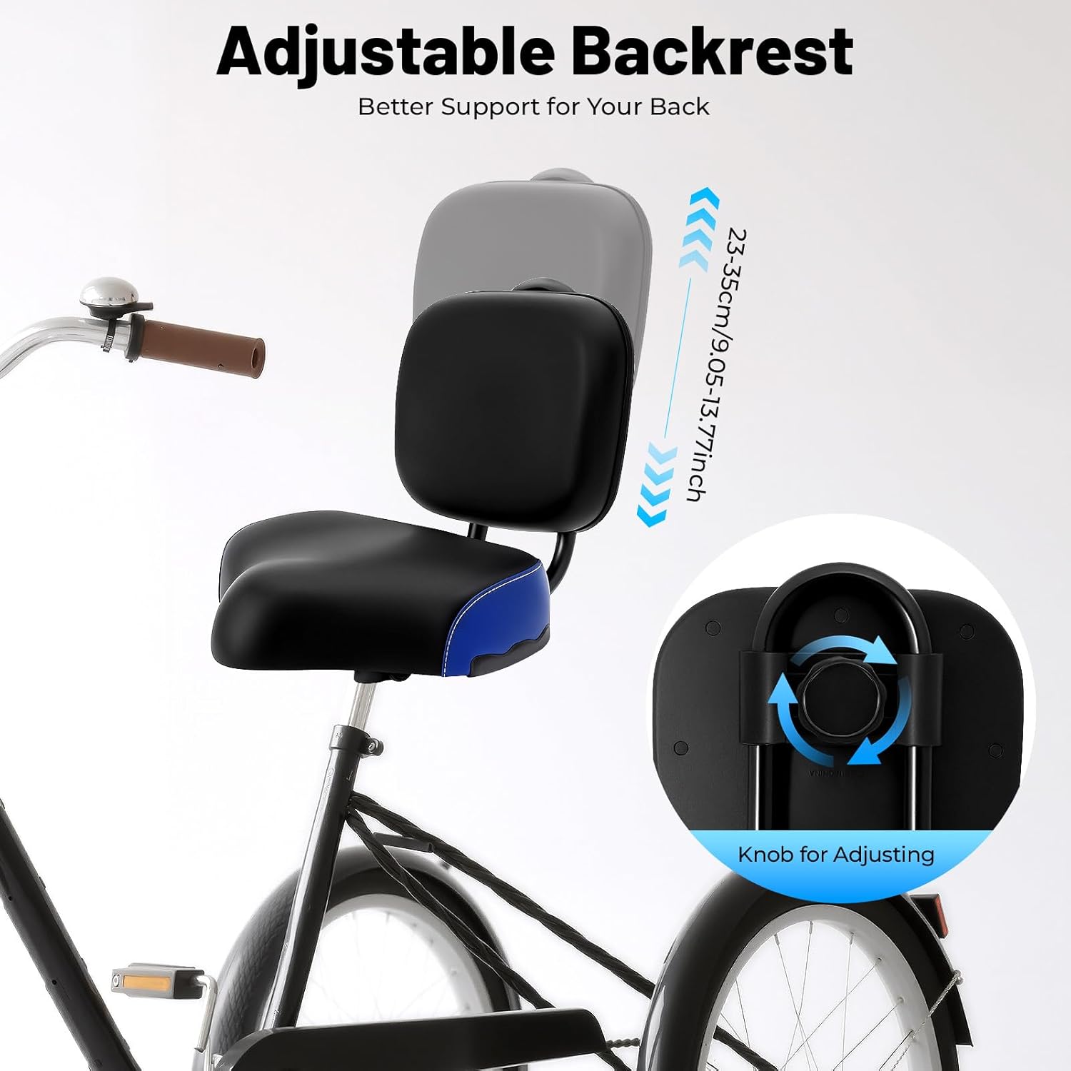 Specifications:l Color: Black blue/black redl Weight: 1kgl Material: leather + foaml Product size: 29.2*24*35cml Net weight: 1.8kgl Suitable for: general tricycle or electric vehiclel Advantages: ergonomic design, shock absorption, comfort and ventilation; cushion with backrest, safe and comfortable,Adjustable back height
