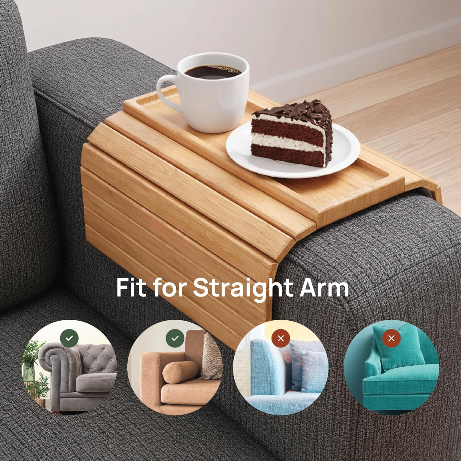 Upgrade your lounging experience with the Protech Unity Bamboo Sofa Arm Tray—the perfect blend of convenience, style, and functionality. Crafted from premium natural bamboo, this flexible tray transforms your sofa into a practical mini table, ideal for drinks, snacks, remotes, books, or your daily essentials. Designed to fit most straight-arm sofas, its multi-panel roll-up design conforms to the shape of your couch armrest while providing a stable and flat surface. The eco-friendly bamboo material offers exceptional durability, a smooth finish, and a naturally stylish look that complements any living space. No tools, no assembly, no hassle. Simply unfold, place it over your sofa’s armrest, and enjoy instant access to whatever you need—without reaching or getting up. Whether you're settling in for a movie night, reading a book, or hosting guests, this tray helps you keep everything within reach while protecting your sofa from spills and stains. Plus, the non-slip silicone bottom keeps it in place, so your drinks and snacks stay secure. When not in use, the tray rolls up compactly for easy storage, making it a must-have for small spaces, apartments, or anyone who values smart home accessories. Key Features: Premium Bamboo Quality: Made from hand-selected natural bamboo with beautiful grain and smooth edges. Flexible Roll-Up Design: Adapts to most sofa armrests and rolls up for compact storage. Non-Slip Protection: Features a silicone base and raised rim to prevent sliding and spills. Versatile Functionality: Perfect as a sofa tray, snack server, drink holder, or placemat. Ready to Use: No assembly required—just place it on your sofa and enjoy! Easy to Clean: Wipes clean with a damp cloth; stain-resistant surface. Satisfaction Guaranteed: Contact us via Amazon for any issues—we’ll resolve it within 24 hours.