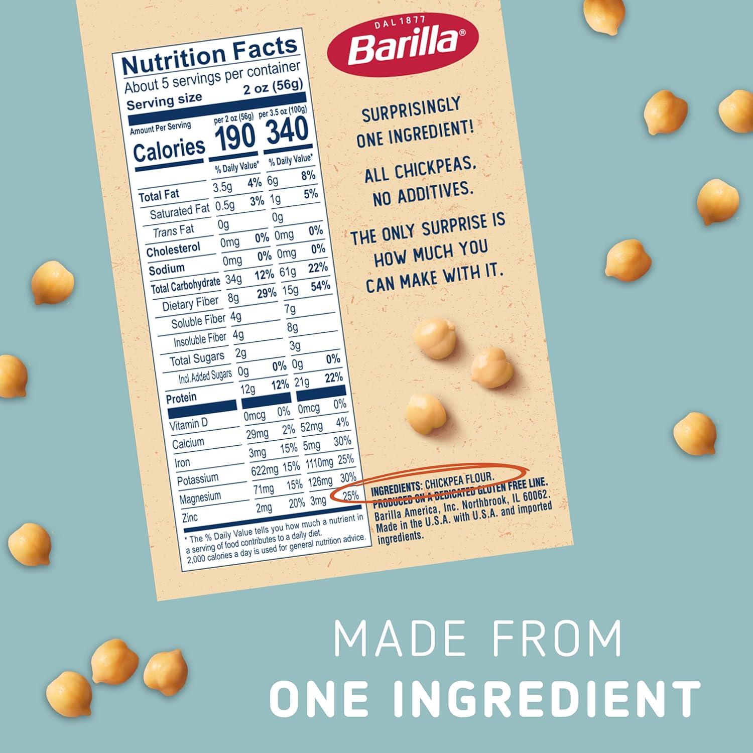 This naturally gluten free orzo pasta from Barilla is made with one simple ingredient: chickpea flour. Similar to chickpea rice, Barilla Chickpea Orzo is a chickpea pasta that suits a wide range of hot or cold dishes prepared by any home cook in a home kitchen. From salads and bowls to pastas and risottos and beyond, the only surprise is any everyday meals you can create while adding plant-based variety. Craft plant-based dishes with this Barilla pasta that contains 21 grams of protein and 15 grams of fiber into each 3.5-ounce serving, is certified gluten free and non-GMO, and contains no xanthan gum.