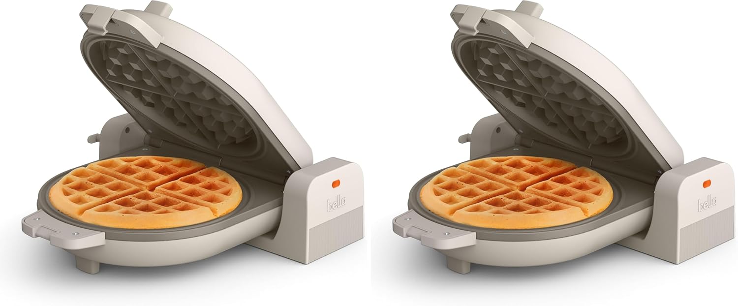 The bella Flip & Store Waffle Maker brings diner-style Belgian waffles right to your kitchen with a space-saving twist. Its innovative hinge design allows you to flip waffles 180° for perfectly even cooking, while the compact, stand-up storage saves valuable kitchen space. No more bulky appliances—this breakfast maker wraps up neatly, with a lockable cord and an elegant profile that’s easy to tuck away. Equipped with a powerful 1000-watt heating system, our mini appliances quickly cook 7-inch wide, 1-inch thick fluffy waffles that are sure to impress. The front-facing, cool-touch handle provides a comfortable, secure grip, making flipping a breeze, and the ready indicator light ensures perfect timing every time. Our EverGood™ Ceramic Nonstick Coating guarantees a smooth release and hassle-free cleanup, free from PFAS, PFOA, PTFE, lead, and cadmium. Whether you’re setting up a wedding registry, shopping for a dorm, or looking for the perfect gift, the bella Flip & Store Waffle Maker is an essential addition to any kitchen. Available in four stylish Bella colors -- oatmilk, surf, plum and blossom -- it’s the ultimate combination of function, fashion, and fun!