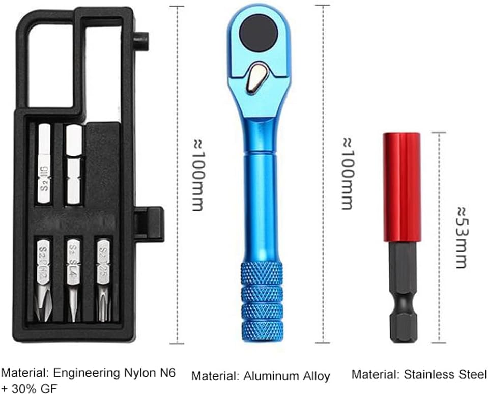 Efficient Repair Starts with a Good ToolThis bicycle repair tool is designed for users who value efficiency and portability. It integrates a ratchet wrench, extension bar, hex wrench, and 10 commonly used bits, eliminating the need to carry a bulky traditional toolbox. It allows you to perform various tasks such as bicycle adjustments, furniture assembly, and appliance repair.Product InformationMaterial:Aluminum Alloy (Wrench)Stainless Steel (Extension Bar)S2 Alloy Steel + Bright Chrome Plated (Bits)Weight: 148gPackage Contents:Ratchet Wrench x1Extension Bar x1Bits x10