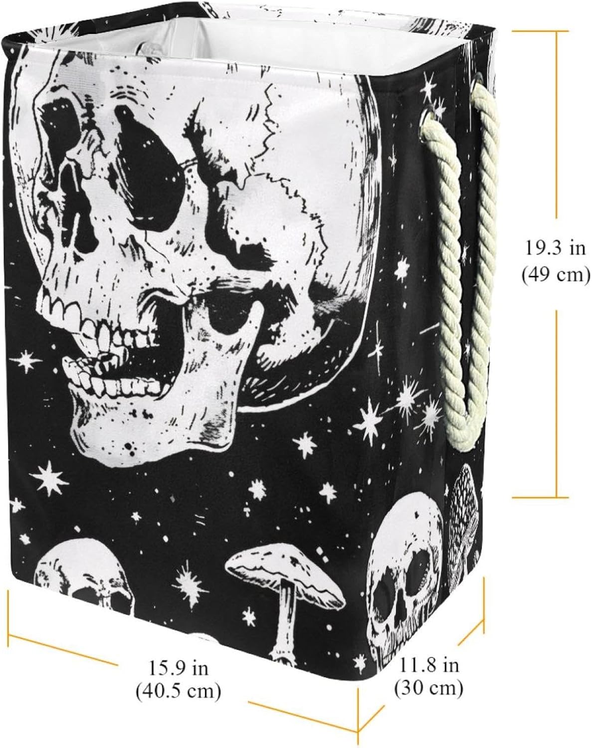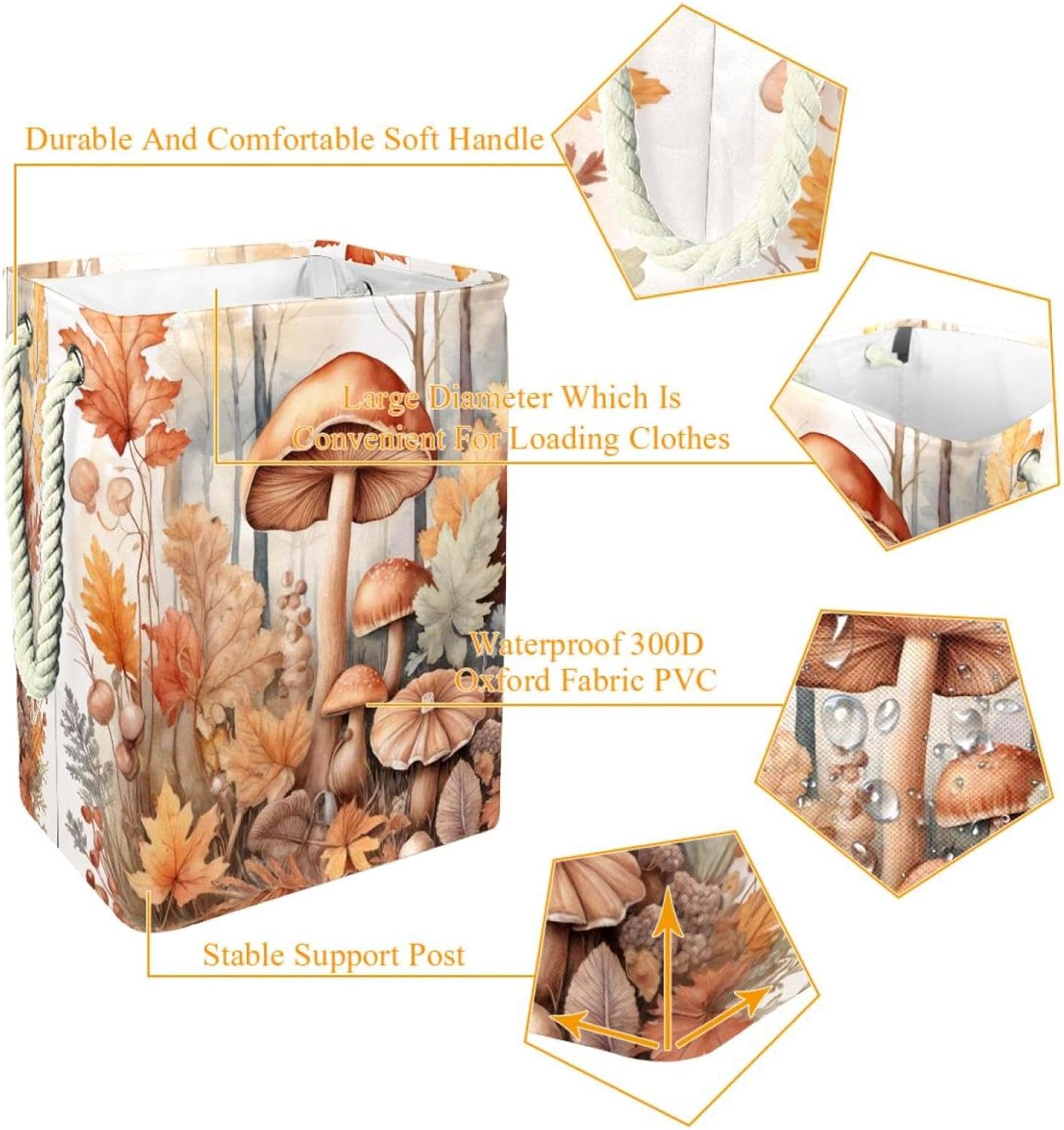 Are you still worried about the mess in the room, no place to put dirty clothes, and no place to store children's toys?Our laundry basket is a great choiceFeatures:Collapsible design: Convenient for travelling or home storage. Easily store when not in use. The four detachable support rods make it not easy to collapse when in use.Large capacity: 19.3x11.8x15.9 In, Approximately 60L. Perfect size to storage a lot of clothes, kids toys, baby stuff, books, etc.Durable material: Made of 300D oxford cloth with PVC material, water-resistant and not easy to get dirty.Stylish Pattern: The pretty laundry baskets not only practical, but can be used as a good decor at home, bathroom, bedroom, etc. Easy To Install:When you need to use it, you only need to insert the support rods into the four corners of the laundry basket to easily support it. When not in use, just take out the support rod, it can be easily folded and stored. Easy to use and save space.If you like it,Don’t miss it. It will help you solve your trouble.