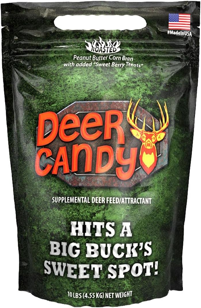 BOSS BUCK DEER CANDY ATTRACTANT: The action that Deer Candy provides from pouring out one bag of Deer Attractant is phenomenal! Hunters are reporting they're seeing the fastest and most intense accumulation of deer with this product they have ever seen! Take a Trail Camera and one bag of Supplemental Deer Feed and you'll see for yourself. Action can get little crazy using Deer Feed - from one deer to whole herd coming to aroma in a very short time. MAIN FEATURES: - Superior blend of roasted peanuts, corn, bran and a little secret of Berry Flavors; - Hits a buck's sweet spots; - Strong aroma, attracting ability; HOW TO USE: Pour attractant for deer straight out of the bag at the desired bait spot. Zig-zag line applications seem to be preferred by deer. You may use it to top dress or mix with corn or protein pellet feeds. Pour over stumps or logs for stealthy applications. Can be used in any feeders approved for powdered grain attractants and some gravity feeders sealed from moisture. Avoid moisture upon initial application. After deer are acclimated to Deer Candy, they will even eat it wet. Avoid standing water.