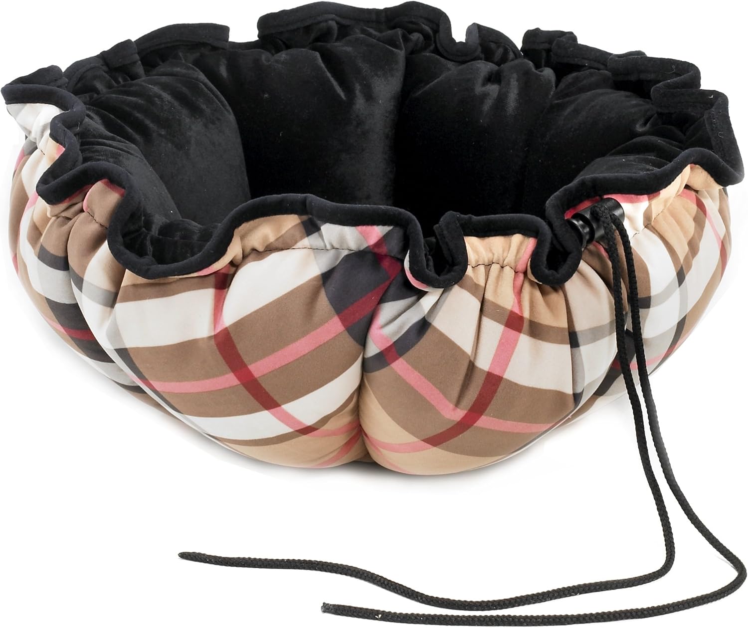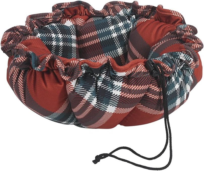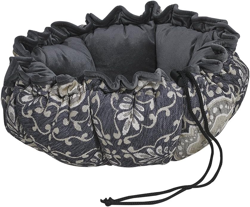 This cleverly designed bed can be used when flat as a lounging mat or by simply pulling the string/toggle to adjust the size of the opening, it becomes the ultimate cozy hideaway. Machine washable & dryable. Note: sizes shown reflect dimension (diameter) when flat.
