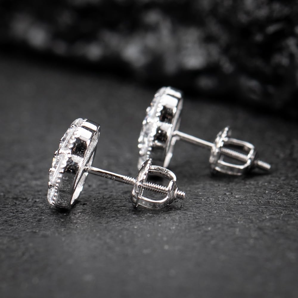 Brilliant Unisex Elegant Iced Cz White Gold Plated Sterling Silver Screw Back Post Round Men's Women Flower Cluster Cz Unisex Circle Stud Hip Hop Hypoallergenic Earrings PERFECT FOR ALL OCCASIONS: Looking for the perfect white gold plated flower cluster earrings to compliment your trendy style With this clean and classy elegant look, that is the perfect size for every day wear with a diameter of 10mm. PREMIUM QUALITY: Made with 5A premium cubic zirconia stones, premium jewelers brass with 925 sterling silver screw back post and White gold plating long lasting finish that is nickel free, lead free, and hypoallergenic. Classic and elegant Shiny look: The simple fashion style with no exaggeration can better highlight your steady-going style.It's suitable for men and women don't have to worry about style collocation. never out of date, no matter spring, summer, autumn and winter are tie-in, Wearing this beautiful circle micro pave stud screw back earrings maybe impressed and received so many compliments. Our white gold plated Pave Round Cluster Screw-Back Stud Earring can be worn for a casual everyday look yet it can complement a more upscale outing. These would also make a heartfelt gift for someone special- An easy yet great choice for your loved ones. MATERIAL:Mens circle hip hop earrings studs is made with premium jewelers brass with 925 sterling silver screw back post 14k white Gold Plated and created men gold screw back earrings. The back finding is post with friction back. Made to last a lifetime, strong and durable! All the metals we use are lead free, nickel free and hypoallergenic. About White Gold Cluster Earrings For Men:5A Cz is brilliant gemstone and is among one the best values on the planet. You'll never get tired of seeing the sparkle from all angles! cz gold mens earrings is durable and will not chip as easily or lose brilliance as fast thus making it a good choice for buyers looking for excellent jewelry at reasonable price.