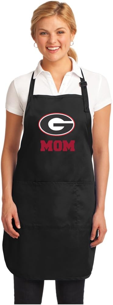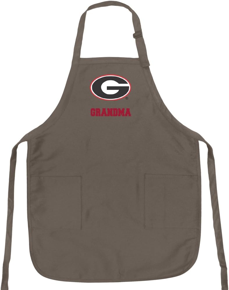 A top University of Georgia Mom Dad Grandma or Grandpa gift idea- A Unique Georgia Bulldogs Apron! This Broad Bay official NCAA Georgia Bulldogs apron features long waist ties, an adjustable neck, and multiple front pockets. Well suited for the kitchen, the grill, or for University of Georgia tailgating. This Official NCAA Georgia Bulldogs Parent or Grandparent Apron is machine washable and made with tough 8 oz polycotton stain resistant fabric. It makes a unique University of Georgia gift for any occasion. Official Georgia Bulldogs Mom & Dad Aprons - Up to 12% Returned to Support University of Georgia Programs!