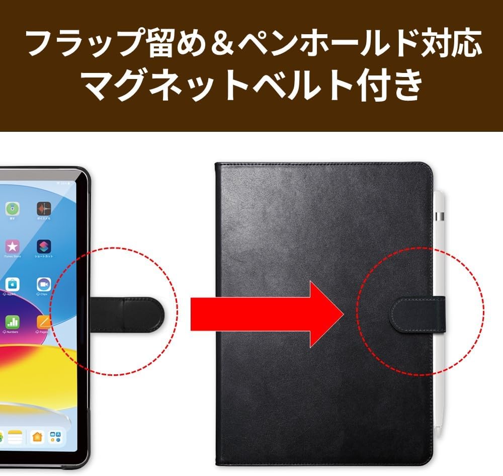 ■ 2 angle leather case for 10.9-inch iPad (10th Generation) ■ There is a pocket inside for storing notes and business cards. The pocket can be adjusted to 2 different angles. ■ The magnetic belt that doubles as a flap and pen holder can be fixed to the back, so it does not interfere with the LCD screen when using the stand. ■ Comes with a hand hold for convenient operation while reading e-book. ■ The device when using the device when using the device when using the device when using it with a wasted battery. Suppresses auto sleep