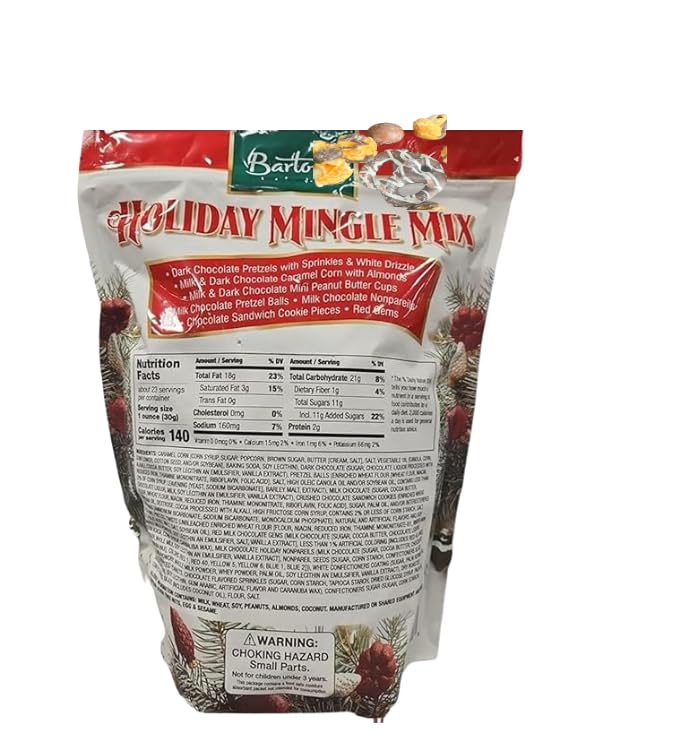 Bartonss Holiday Mingle Snack Mix is the perfect indulgence for festive gatherings or cozy movie nights. This irresistible 24 oz bundle contains a delectable blend of pretzels, nuts, crackers, and other savory bites, all seasoned to perfection. Whether you're hosting a party or craving a satisfying snack, this mix offers a delightful combination of flavors and textures that will leave you craving for more. Conveniently packaged in a single bag, it's an easy grab-and-go option for sharing or enjoying solo. Treat yourself or loved ones to the ultimate snacking experience with Barton's Holiday Mingle Snack Mix.