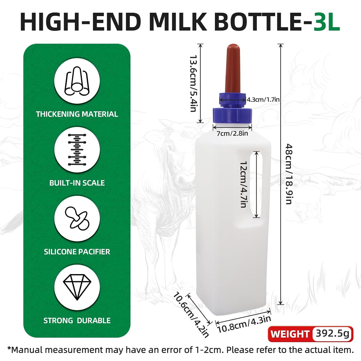 Features The bottle body is made of high-quality environmentally friendly plastic material, and the bottle wall is thick and durable Upgraded double-layer lid design, sturdy and durable, tightly fitting to prevent milk leakage Thickened and elongated silicone nipple, tear resistant and wear-resistant, soft and durable Anti slip thick handle, easy to feed Clear scale, more accurate feeding quantity, and reasonable feeding Detachable design, easy to install and clean Multipurpose: Suitable for mules, donkeys, pigs, sheep, horses, and dogs Widely applicable: a good tool for farmers, farm owners, etc Standard: Color: White Material: Plastic, Silicone Capacity: 3 liters Package includes: 1 x bottle