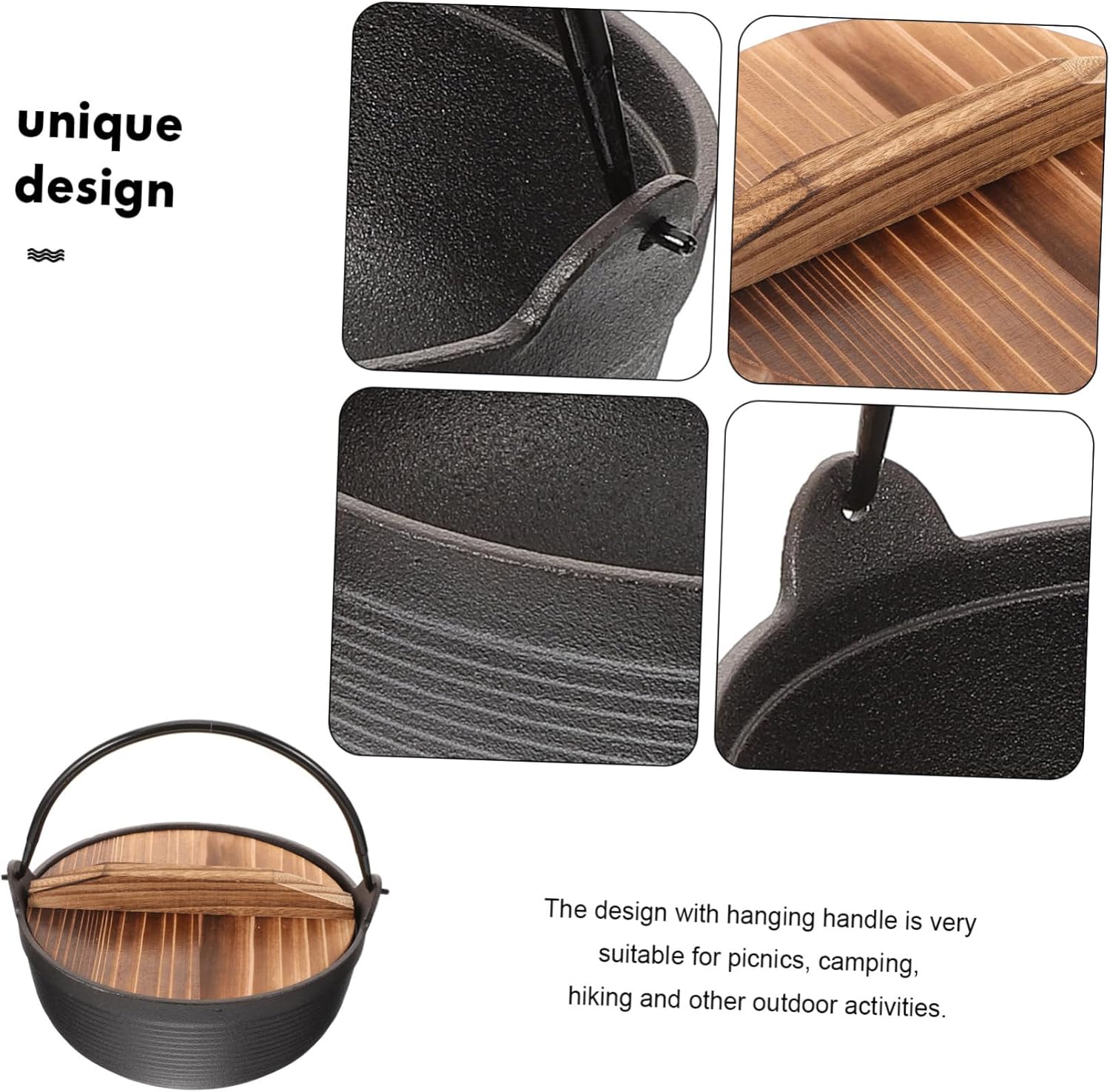 Package List 1 x pot wit lid Features -Color:Black soup pot -Size:19.50X19.50X10.00cm/7.66X7.66X3.93in hanging hot pot for home -Material:Cast iron, wood home pot -The use of wood and cast iron materials ensures uniform heat distribution and quick and convenient heating of food cooking wok. -Our saucepans are in workmanship, wear resistant pot, and of camping soup pot. -The surface of this iron pan is smooth, easy to clean and easy to take care of camping pot. -It can be used directly on an open flame, with fast heat conduction, uniform heating, and very strong japanese style hot pot. -This type of pot has uniform heat treatment and temperature resistance. You can use it for a long time. iron sukiyaki potsGoods Informationiron sukiyaki pots The cast iron material .japanese cookware You can also take it with you when you go camping, which is very convenient.high temperature pot want a hanging for home use? If so, choose our products! Use strong and durable materials, easy to store and use, and can be used at home and outdoors